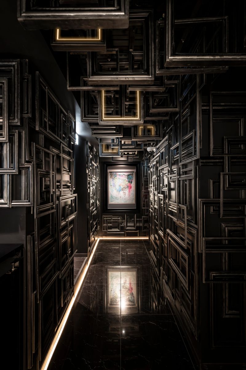 The entrance has countless frames likened to the anonymous crowd living in modern society and introduce to the sauna like another world by passing through it.
