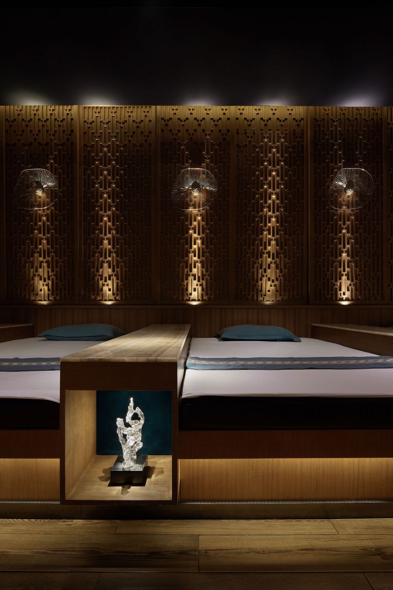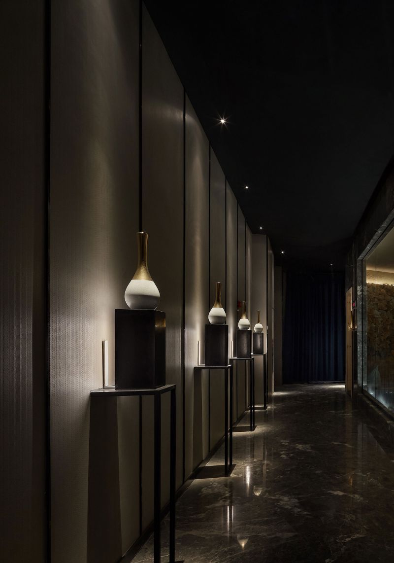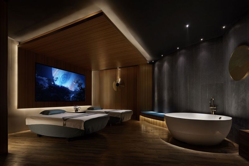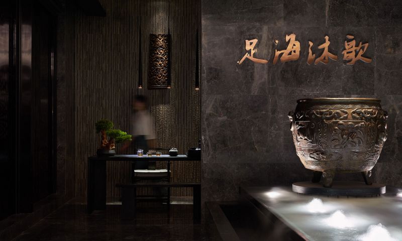 The Decoration Design Plan of Zuhai Muge at Xiaoyi City originates from ripples. We compare the new environment to a drop of water that drops in the placid water surface. After it drops, those naturally-formed ripples gradually spread outward in circles. We place our hope on the natural state of these ripples that mean the spreading and profound influence Zuhai Muge exerts on the whole foot massage industry. At the same time, we would like to freeze-frame the moment when the drop of water is splashing in the space, to help customers enjoy the tranquility.