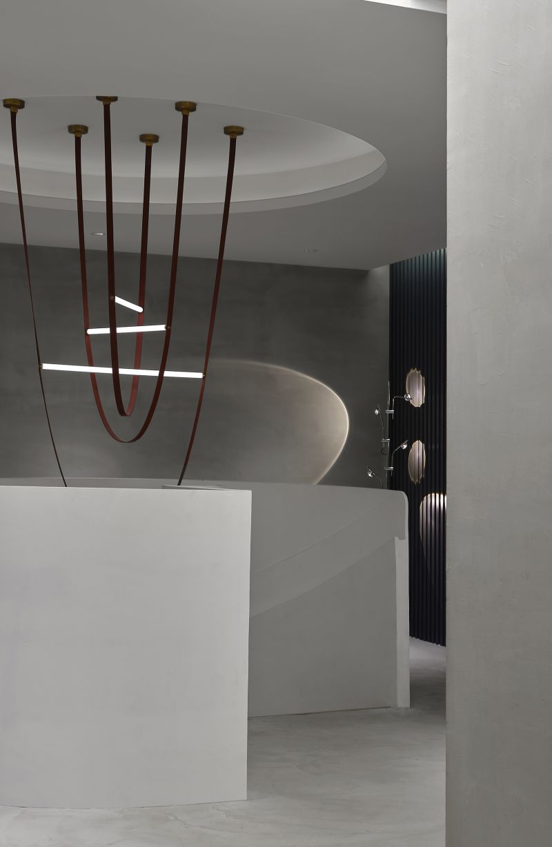 There are three floors in the project. In the design, moving areas with frequent communication such as sales reception and nail art are arranged on the first floor. The second floor is all set as VIP rooms with strong privacy; The first underground floor is designed as a small leisure space, with video room, small bar, simple meal production and other functions. The main functional areas are divided according to dynamic and static, and the smooth moving line design accurately grasps the psychological fluctuations of customers, so that every customer can enjoy a relaxed beauty care experience.