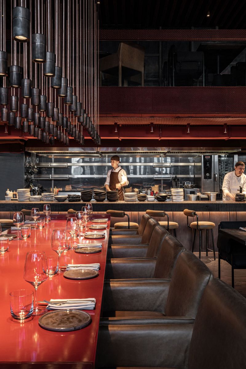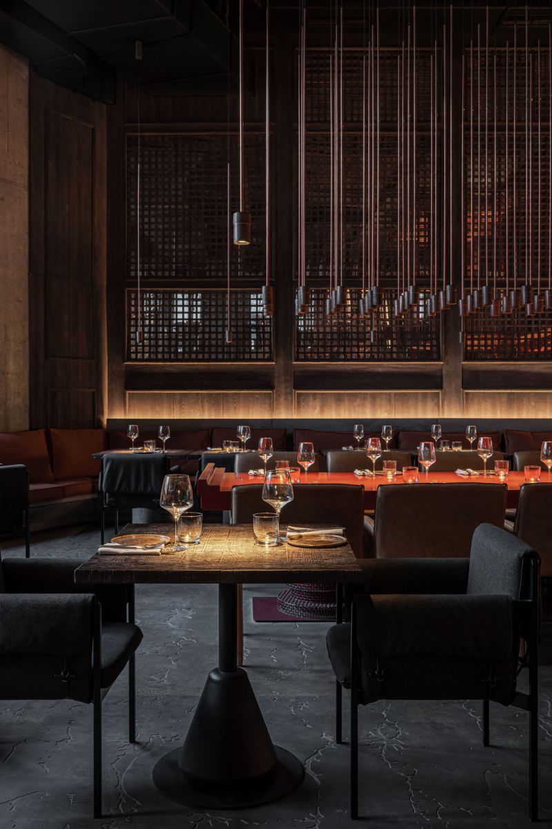 Virgin Izakaya Bar Kharkiv is the biggest traditional izakaya bar in Ukraine with a total area of 520 square meters and more than 5 meters of ceiling height. Our mission was to create a Japanese conceptual space that would look like a real Japanese neighborhood with its inherent authenticity. "Izakaya” is translated from Japanese as “a place in a liquor store” where you can come and drink a glass or two of wine. Over time, such izakaya places began to serve small portions of food prepared right in front of the guests in the open kitchen.