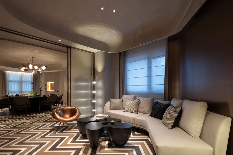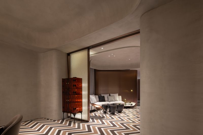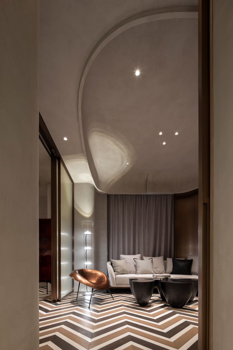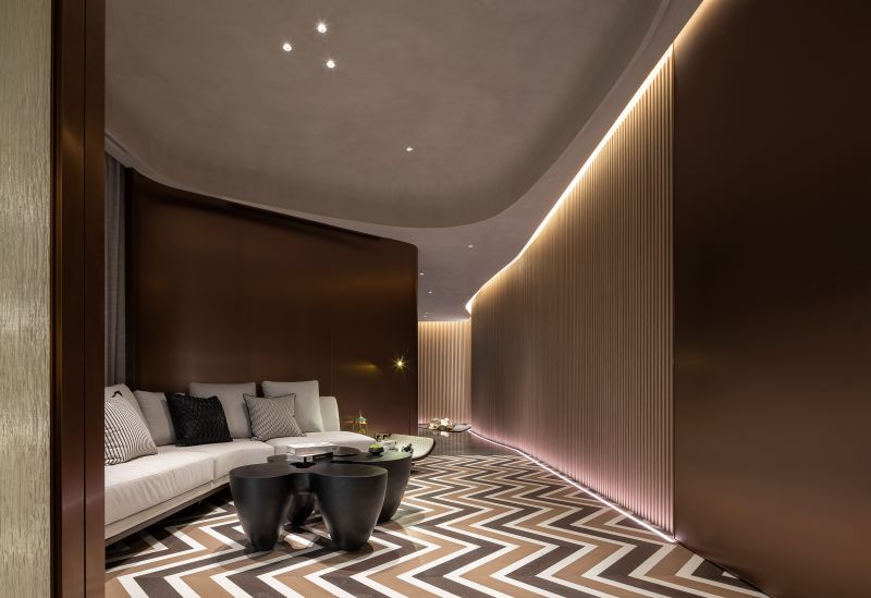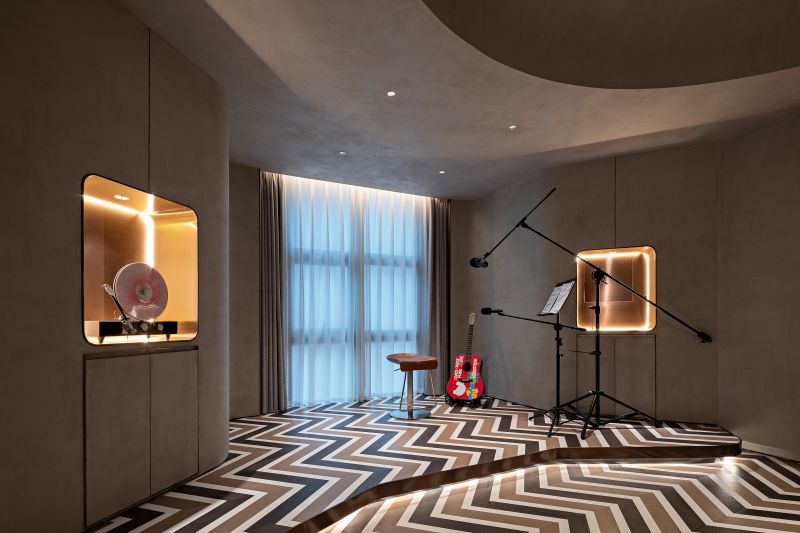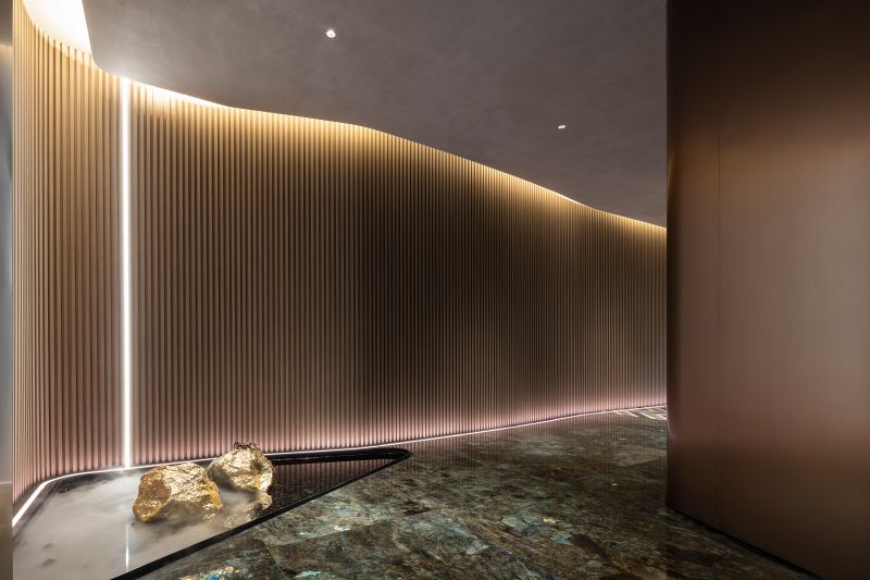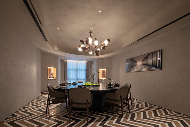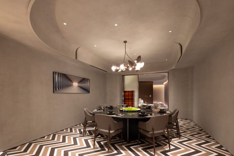Xi Tang Club has created a special "stage" that echoes the dining area but also is separate from it. The recessed structure on the wall, combined with the lighting strip, visually extends and amplifies the space.
