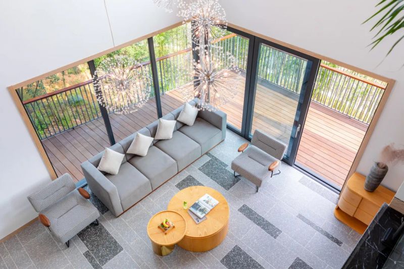 The first phase of the hotel includes 11 forest treehouses, including one, two, three and five bedrooms, each with its own private infinity pool. The second phase is an ecological tent area. Green ecological ingredients, Lion rock bamboo chicken, wild bayberry, radish bamboo shoot, caisson soup ball and mountain spring crucian carp are extremely rural, which can be described as unique. At the same time, you can enjoy tea and talk in the mid-mountain tea room. Flowers, birds, fruits and vegetables in the four seasons create an interesting life in the paradise.