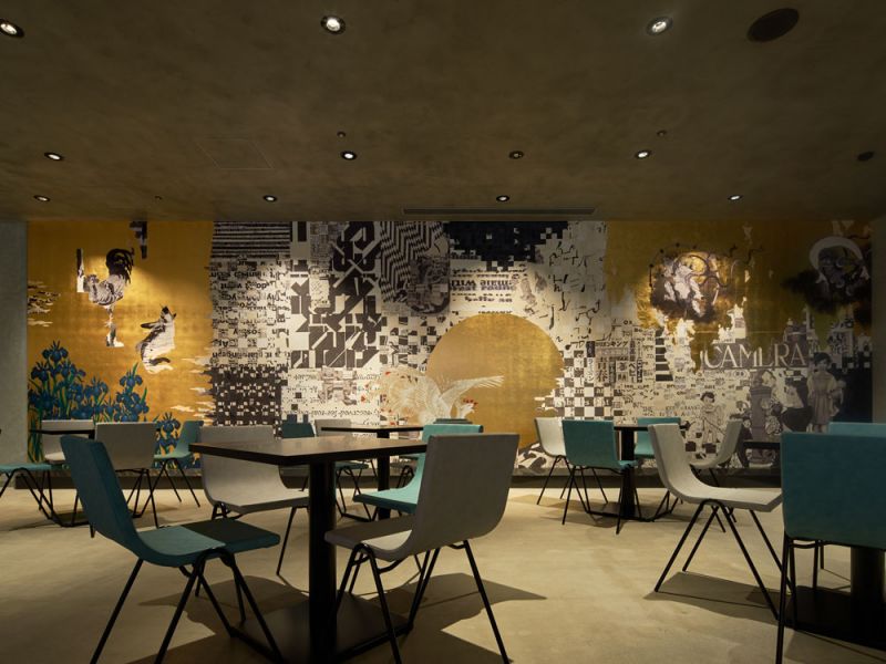 The philosophy informing GARDE’s design decisions can be summarized under the theme Onkochishin ("learning from the past"). The space features works of artists with ties to Kyoto: a gold leaf wall art and an artwork of stacked wooden blocks inspired by the four gods that protect the cardinal directions of Kyoto (Genbu in the north, Suzaku in the south, Seiryu in the east, and Byakko in the west). The result is a one-of-a-kind space where visitors can experience firsthand the modern traditions, culture unique to Kyoto and contemporary art design.