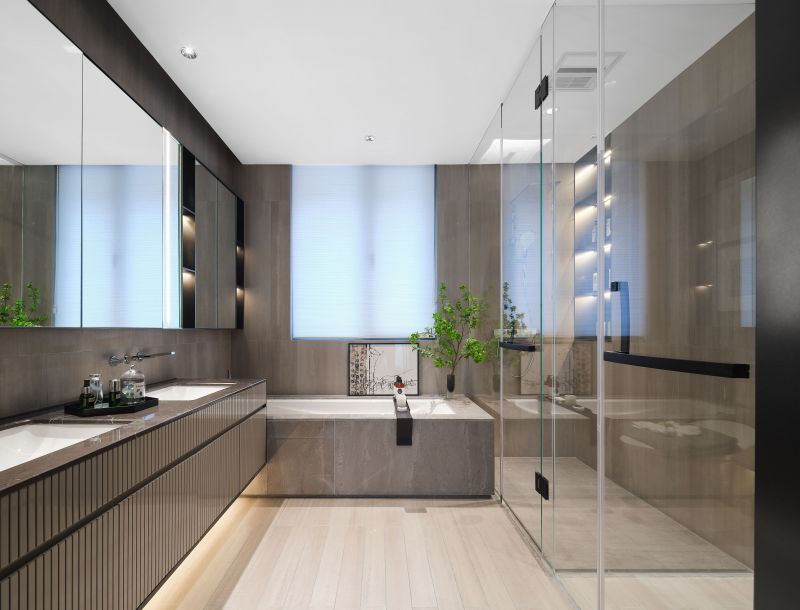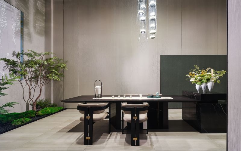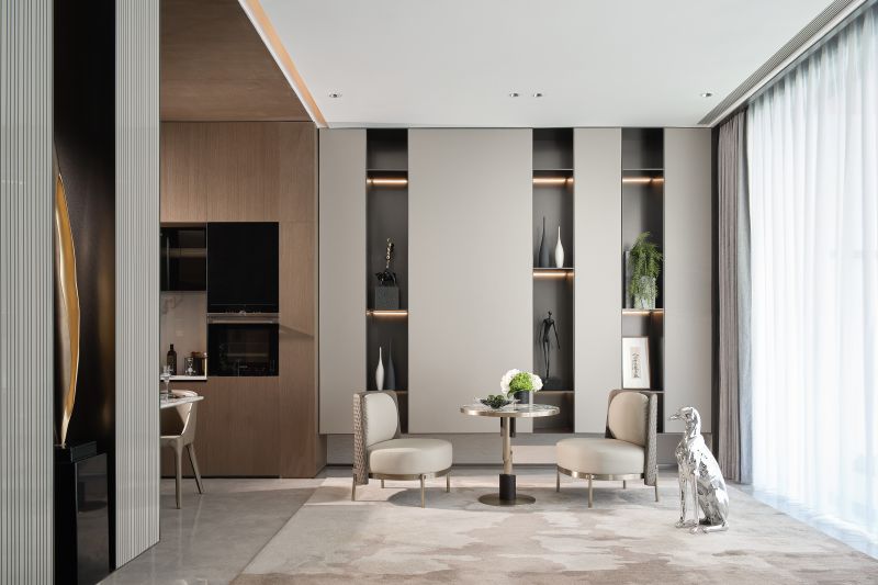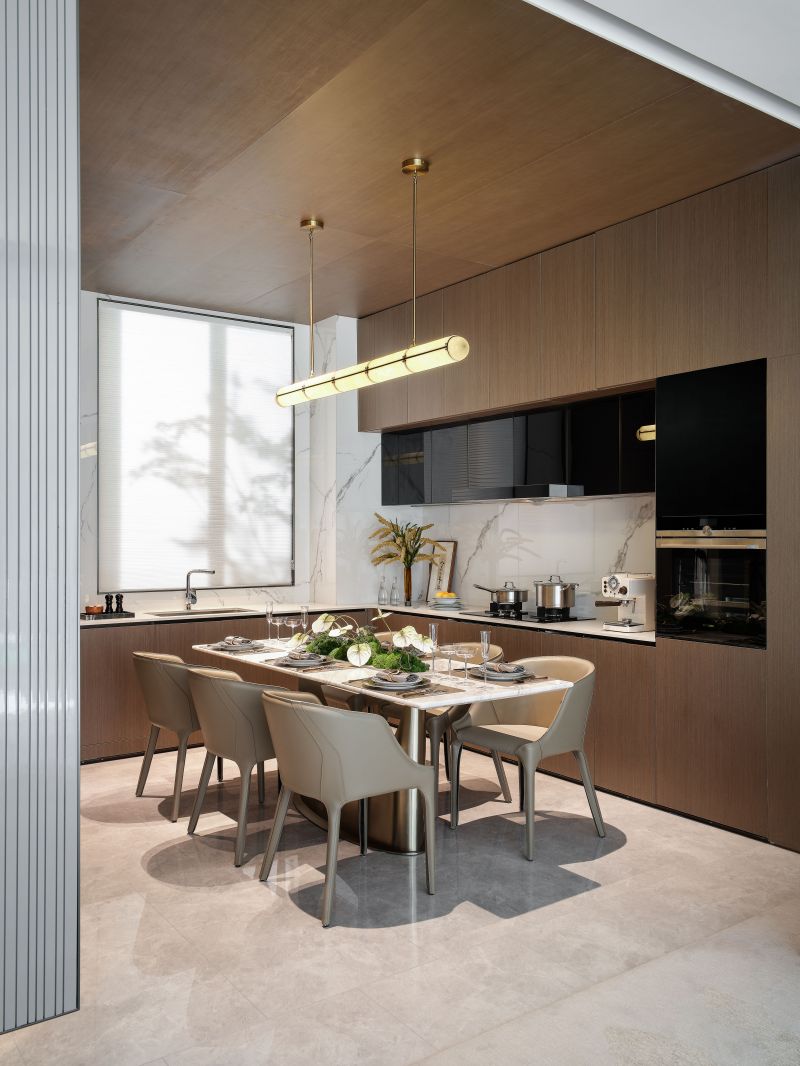 This project has excellent natural landscape resources and a strong cultural heritage. Therefore, in the design of the mock-up house, we took into account local factors in the selection of materials and the extraction of design elements; we chose dark and gray tones of stone, intersecting line forms, and metal with the interplay of block shapes to reflect the modern oriental spatial mood with values. On the framework of modern oriental style, we also refer to the traditional Italian design techniques, deconstructing and reorganizing the modern classic design elements to elaborate the space.