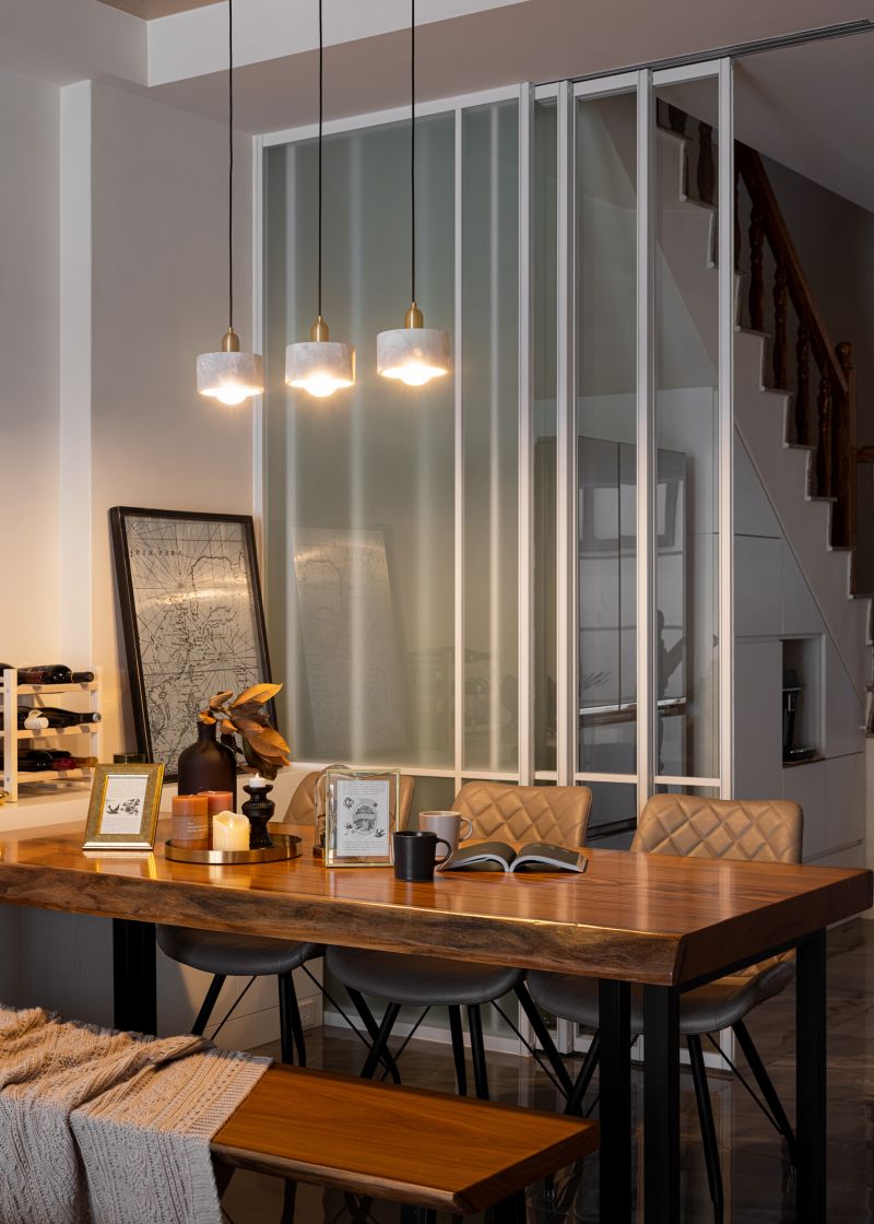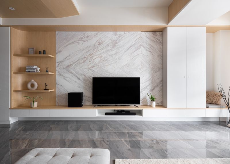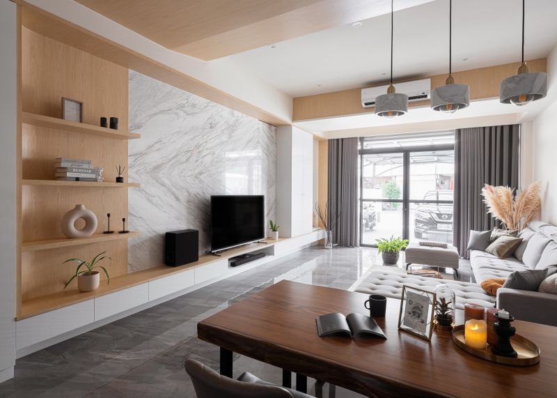 We plan an open pattern living room, dining area, and kitchen to result in a spacious, connected layout. And then, exploit stone, wood, and clean white coating to manifest the concordant characteristics of the three-generation family. In contrast to the vigorous public area, we adopt a pastel color scheme to set up the main bedroom to present the glamorous situation of the private domain.