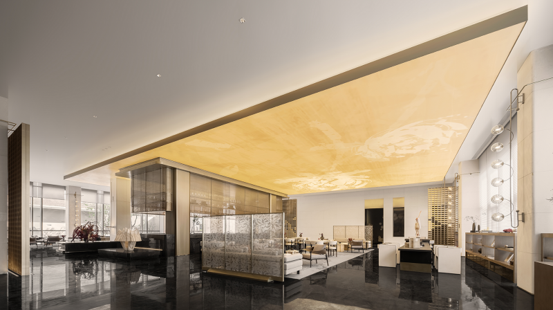 The project is the experience center of a residential development in Urumchi, Xinjiang, the largest province in China. It is a modern interpretation of ideal urban lifestyle in west China, enjoying beautiful natural sceneries including open, undulating mountains and winding rivers and embracing a unique cultural context. The design draws on local distinctive natural and cultural elements, and the flowing light and shadows reflect the fusion of modern Oriental spirit and traditional ethnic civilization.