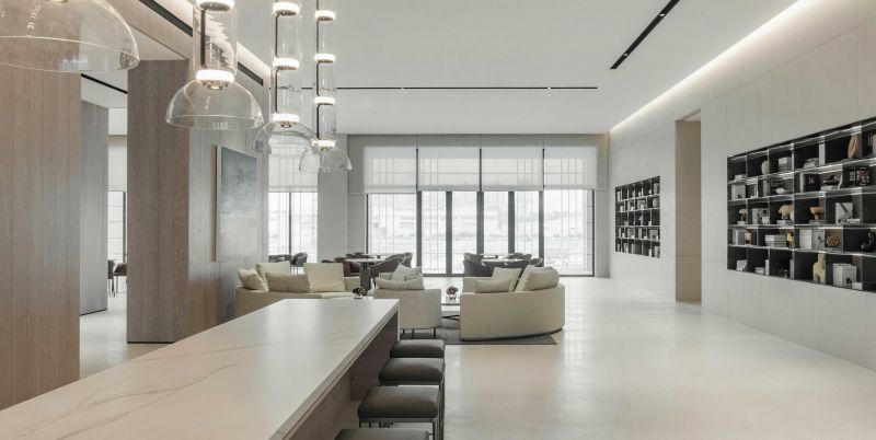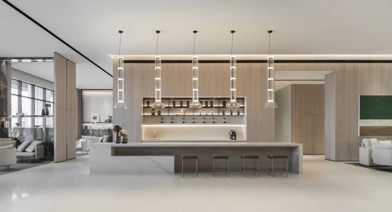 The project is located in Yinchuan, a core city in northwest China,1400㎡, targeting people in need of buying house. The Developer hoped to create a living space with both quality and spiritual identity for people. Entrusted by this, the designer takes "urban reception hall" as design concept , local desert oasis in Ningxia as the cognitive carrier, and selected the most friendly desert-colored slate and warm wood veneer of people to create a unique design. A warm, comfortable, relaxed and warm space atmosphere, making people as friendly and natural as in their own living room.