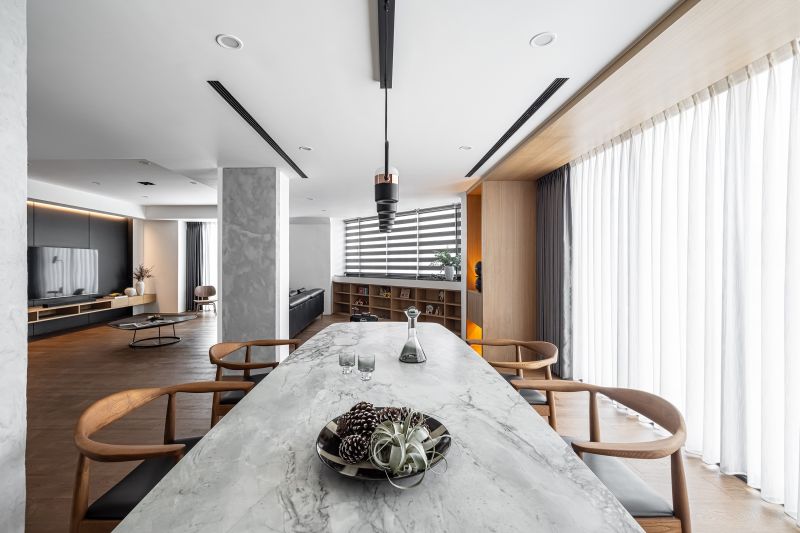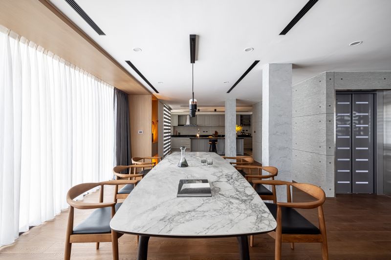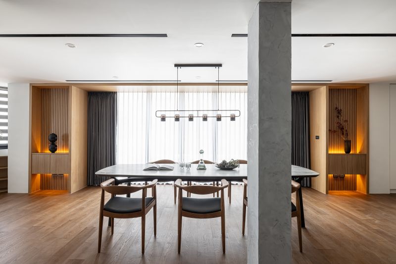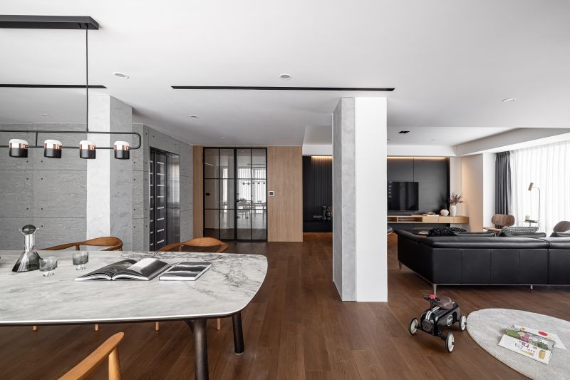 Step into the white building, which reveals glossy, airy, and roomy features. We sort out the host's requirements for tone and manner and reply to the hostess's longing for aesthetics, exploit formality stable black hue and rustic balmy timber elements, successfully create a paradise for the family to live happily.
