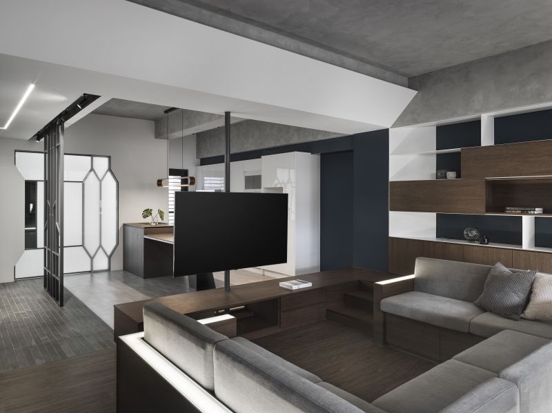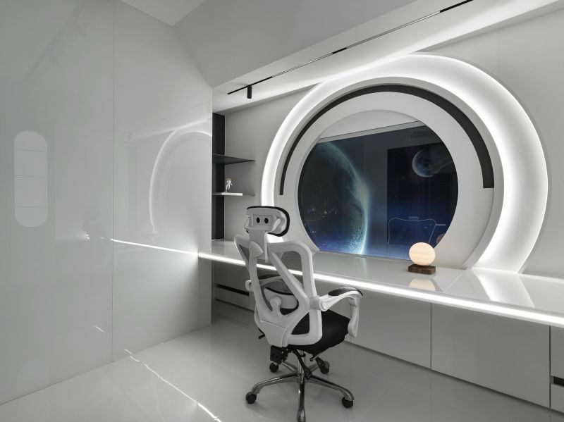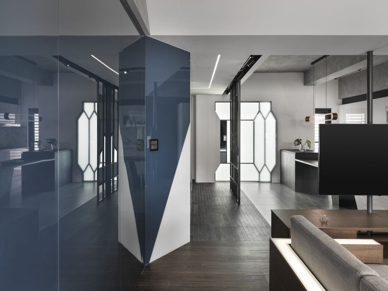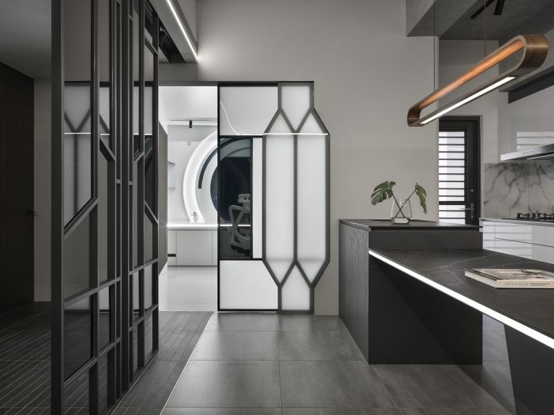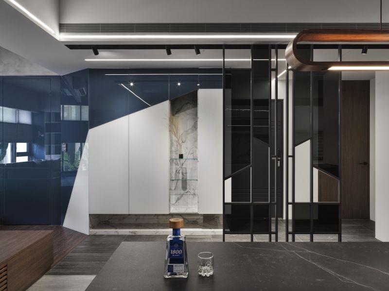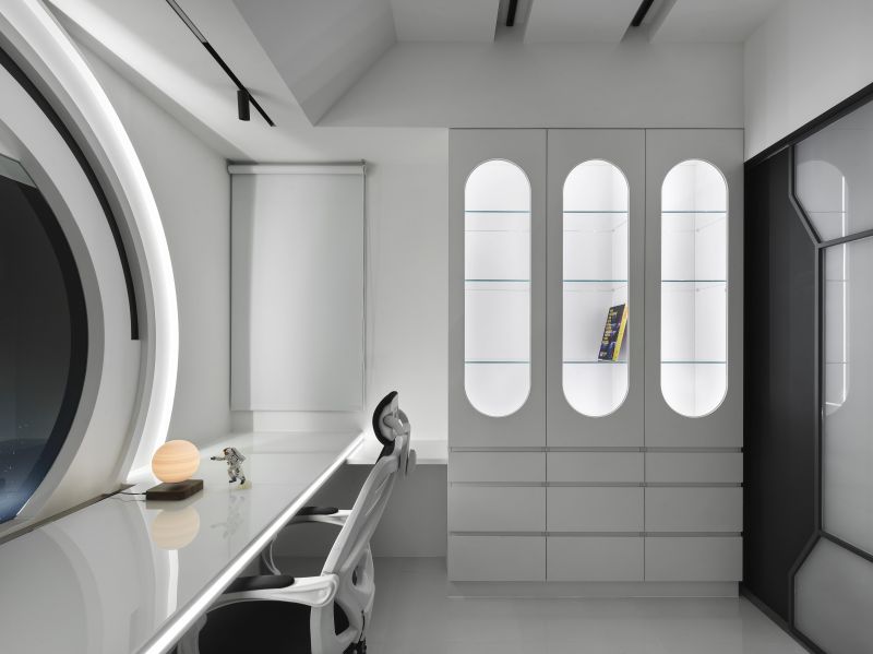 We adopt pure white and ultramarine blue color schemes to manifest a secluded space where the spacecraft stay. And take advantage of balmy solid wooden veins to harmonize the chill, rigid stone and metal. In addition, install strip lights to draw out dynamic features in the space, design bold geometric-shaped settings, and arrange multi-functional equipment, accomplish a stylish residence with both science fiction and agreeable charm.