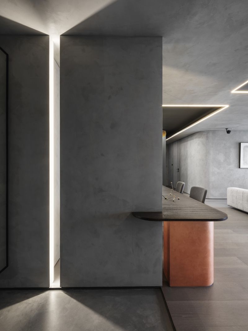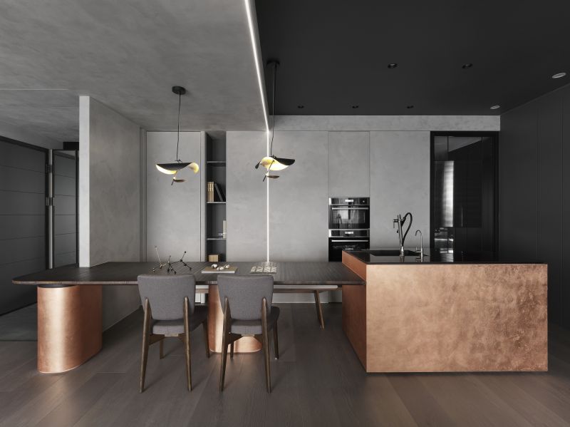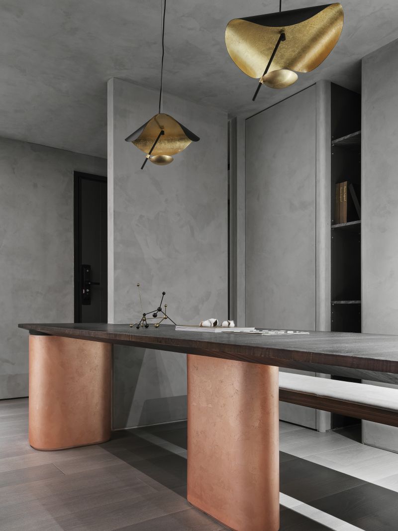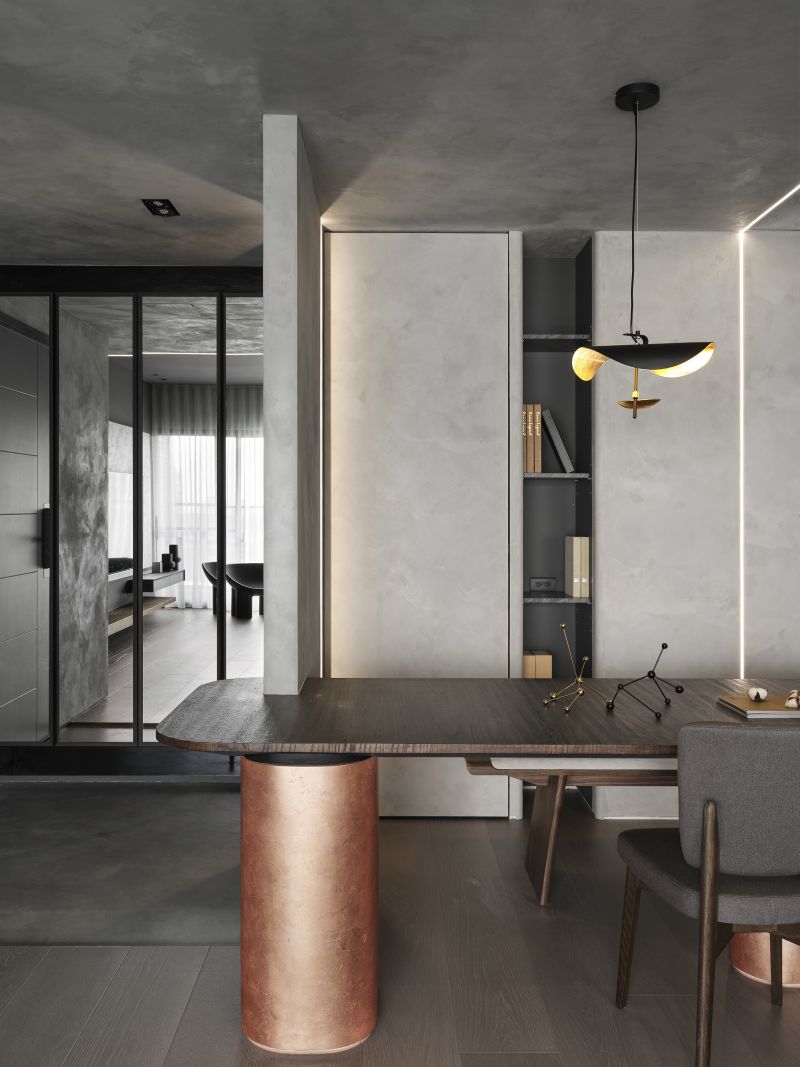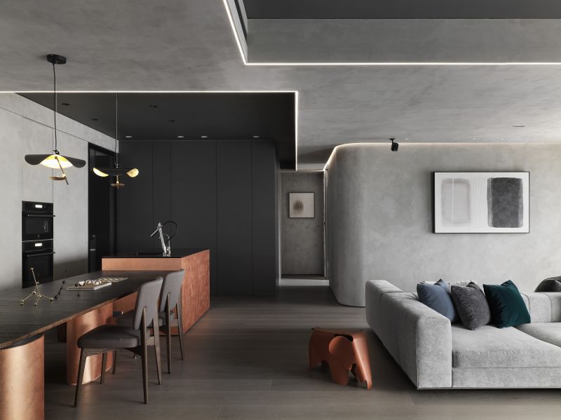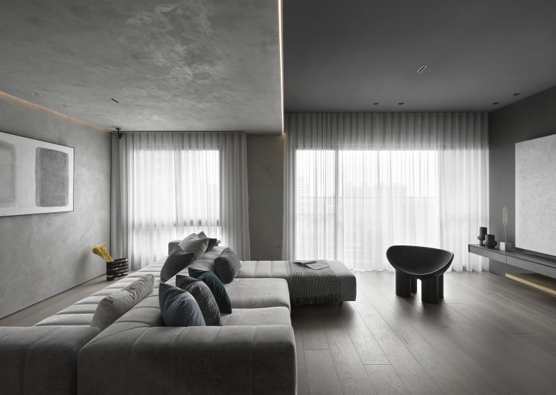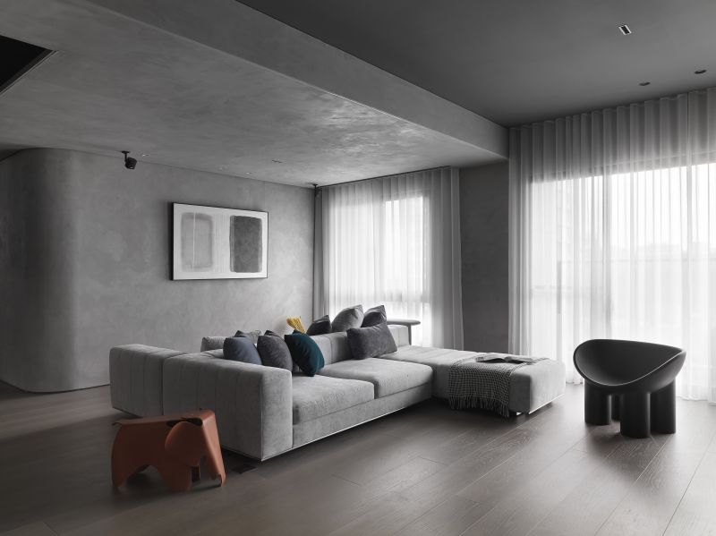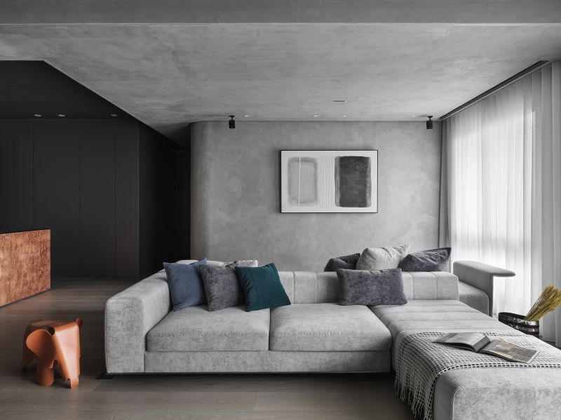 Boldly apply the serene and restrained inky color in the house and go with a light-gray hue; then, pave the floor with balmy timber and arrange fabric sofas, ingeniously fashion a warm, simple-toned, yet rich-layered situation. Each scene and arrangement is an ultimate application of the blackish tinge that reveals a stable, elegant charm and the unbounded imagination of the deep color scheme.