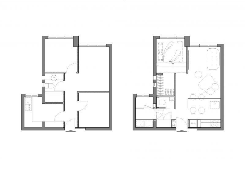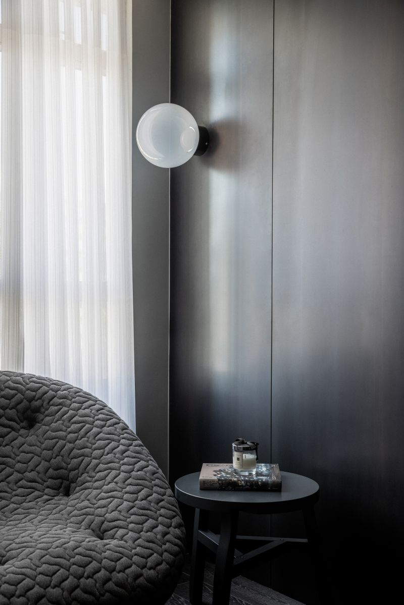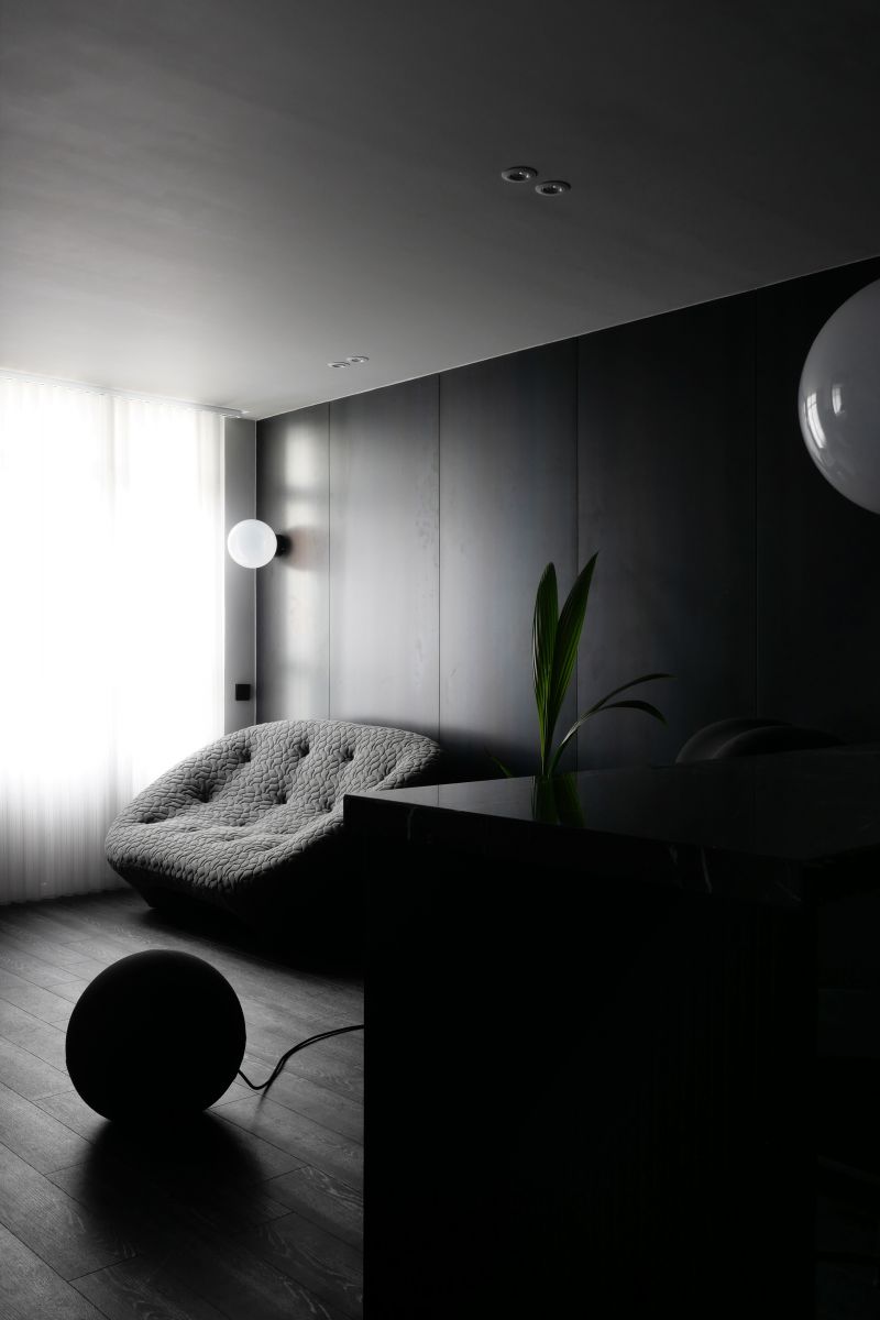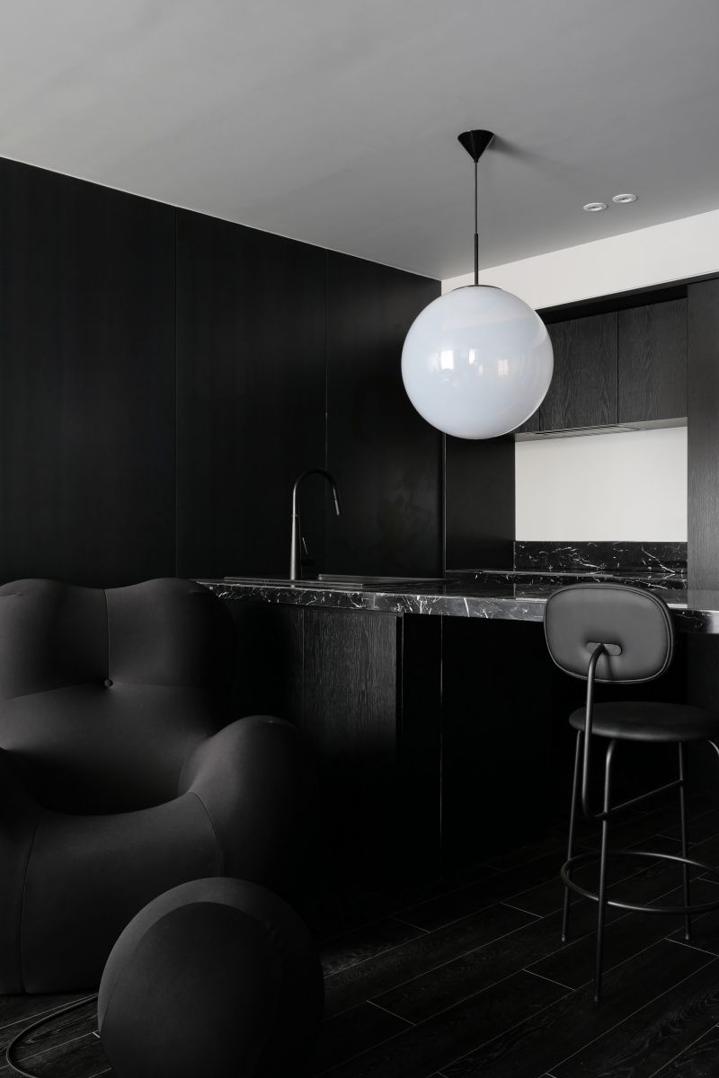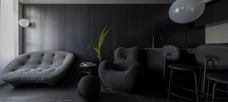 Black is being used to frame the structure, Main wall & floor merged in piece that enhancing visual extension and weakening boundary, light grey ceiling connects with window and spreads sunlight, further enlarge volume of the house.