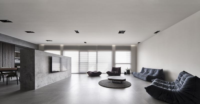 Blank, minimalist, and functional are the design themes of the plan. Through the precise proportioning of colors naturally bring about the distinct ethereal atmosphere of the spacious circumstance. And, the home furnishings of concise features result in an appealing visual perception beyond practical function.