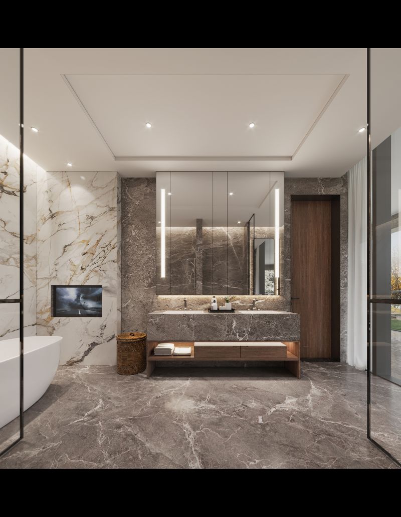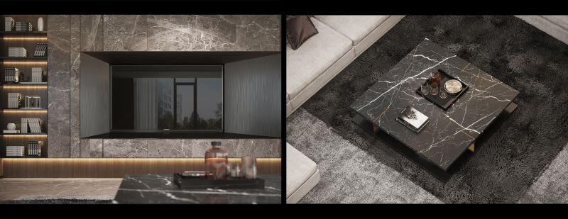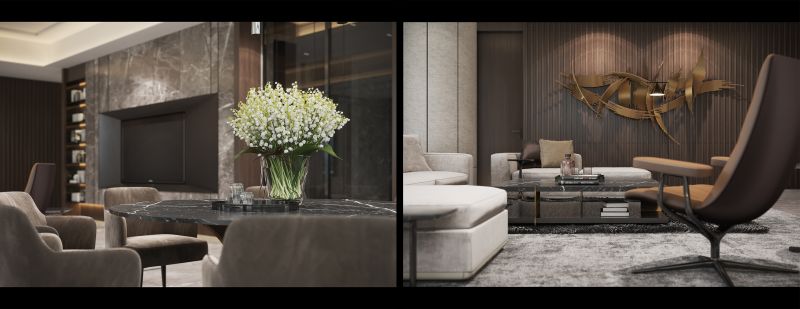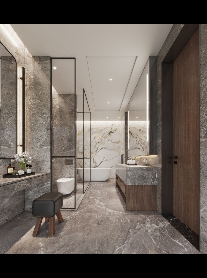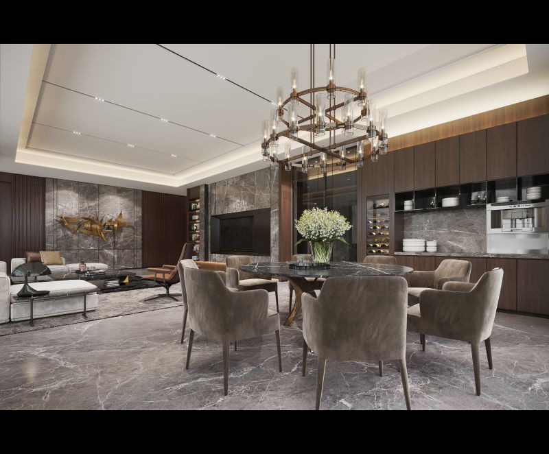 The waves of the sea and the stone texture reflect each other The warmth of the floor was like stepping on soft sand Calm and elegant tone, comfortable and delicate soft outfit Bring you a light luxury life by the sea.