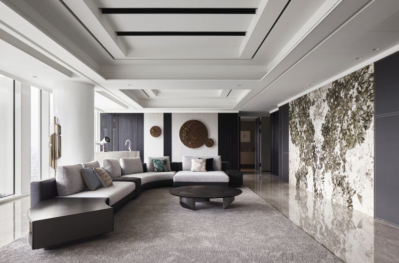 We featured the modish simple Italian sectional sofas as the core of the interior design. Carefully arrange the color schemes, selected materials, brilliant illuminations, and homey furniture to achieve the design concept of creating a "well-balanced space."