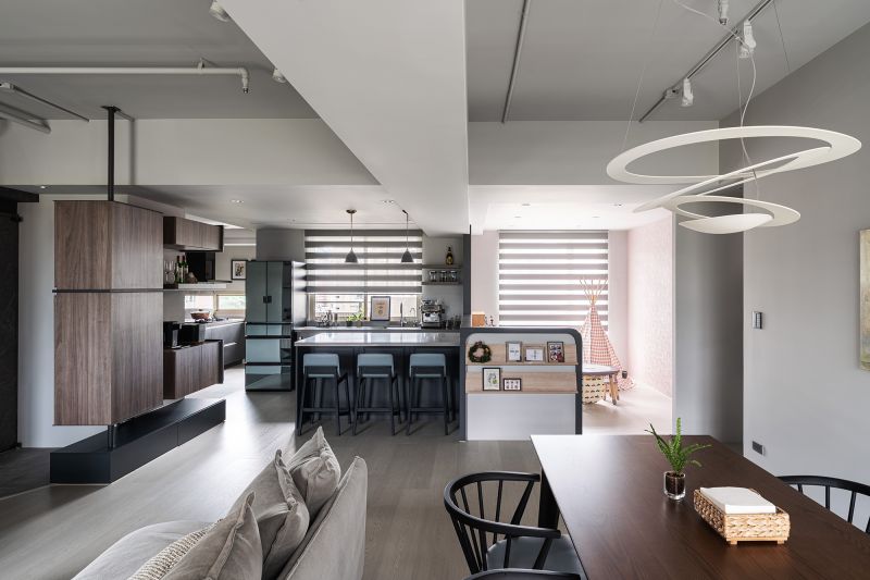 The main focus of this design case is the lighting and spaciousness of the house. The designer has selected grey to be the primary color and has made clever use of a steady wood pattern, accentuating the transparency of the light and making the whole living area more spacious. This provides a loving and relaxing atmosphere and prevents the entire living space from being too crowded. When entering the personal area, one will realize that the designer has cohesively created a gray theme with a light-colored wood pattern, which gives the space a less stressful vibe and a sense of peace.