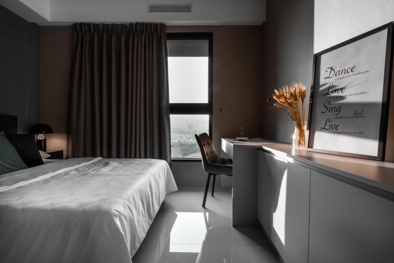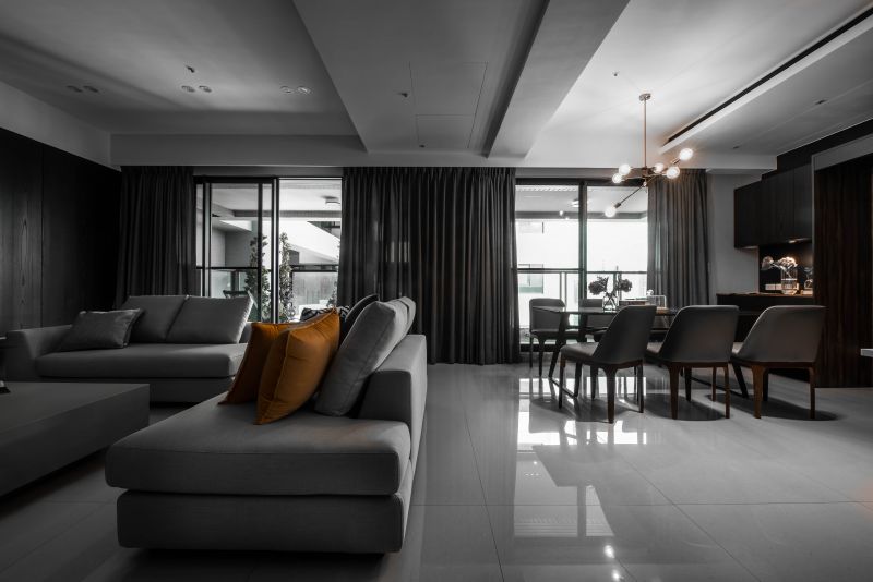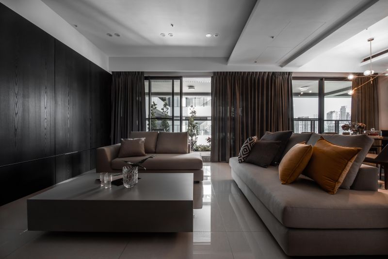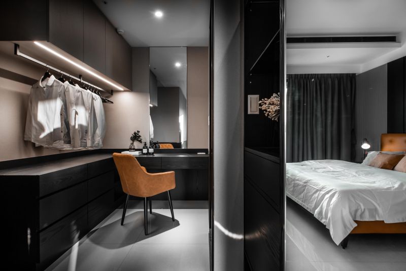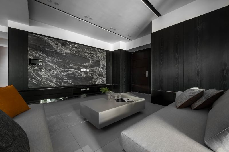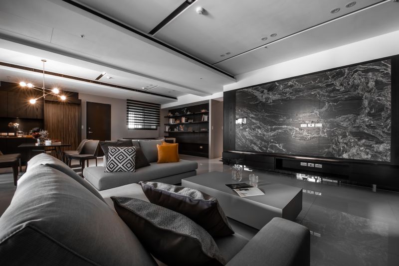 The color arrangements are the highlight of this space. The overall is decorated in a perfectly balanced proportion by using splash-ink slabs, orange elements, and wooden tonal while adding a modern sense. Meanwhile, metal-framing techniques and lighting in unique shapes are also used to bring out the artistic characteristics of the grey-and-white space, embodying the concept of“simple designs are the best designs.”
