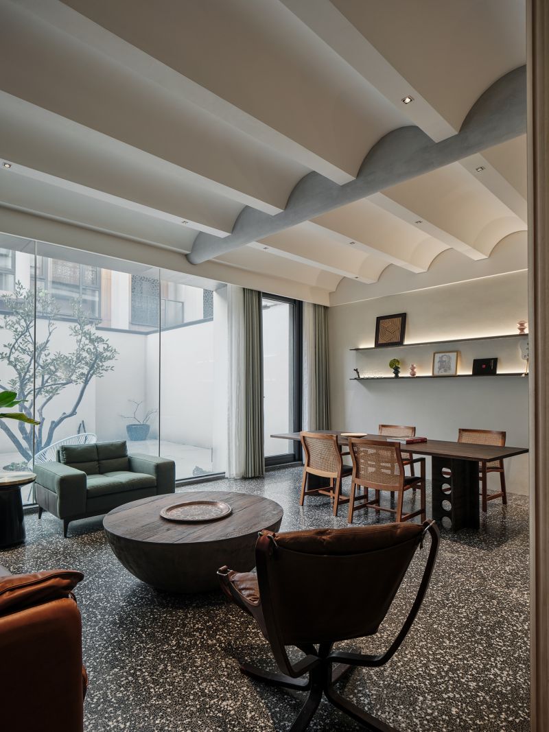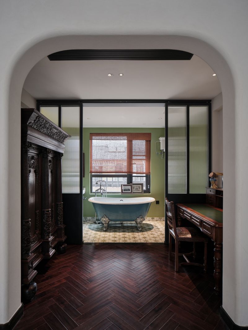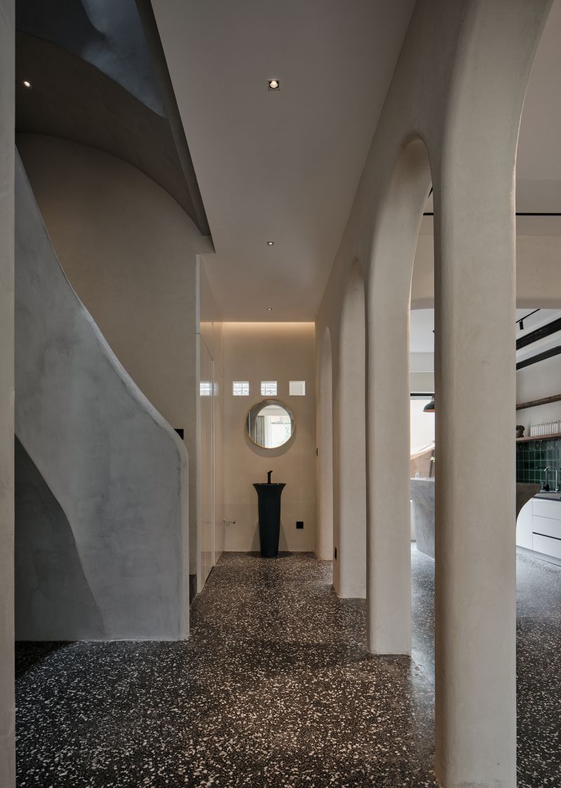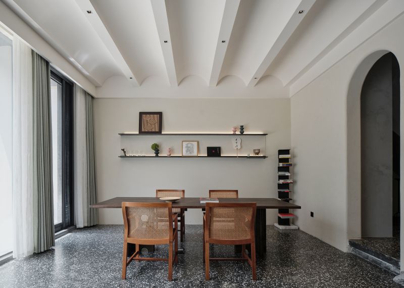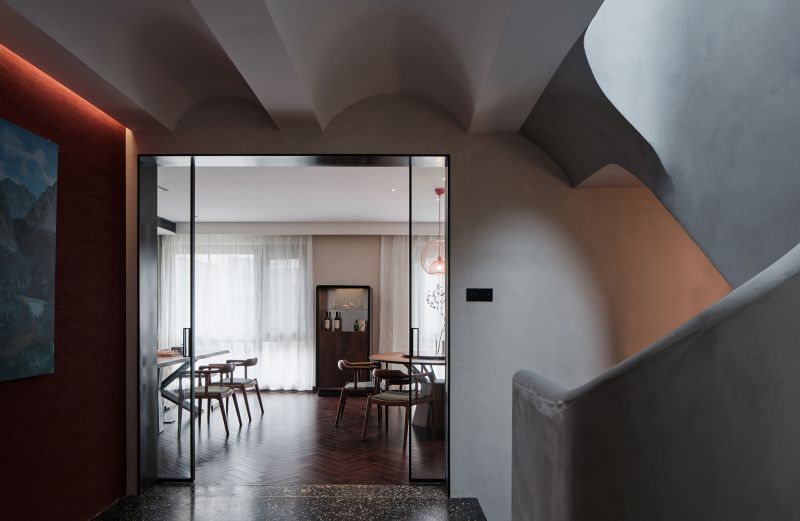 A lot of arched shapes are designed on the wall and top surface. The curve brings fluidity to the space. The sharp edges and corners are erased, and the soft and calm artistic paint like cream yellow is painted, which gives people a comfortable sense of security, and also conveys The friendliness and enthusiasm of the owner. The furnishings in the house include contemporary furniture, as well as antique and medieval furniture returned from abroad. Most of them are classic designer styles. There is no sense of incongruity when they are put together.