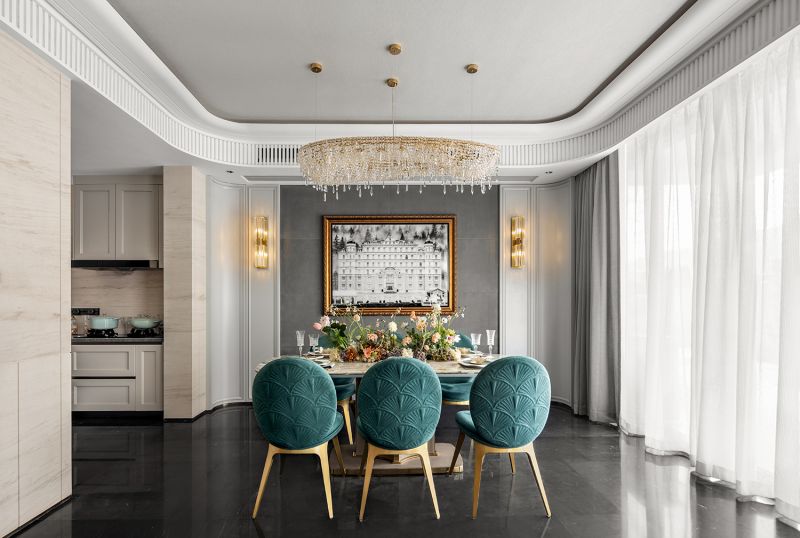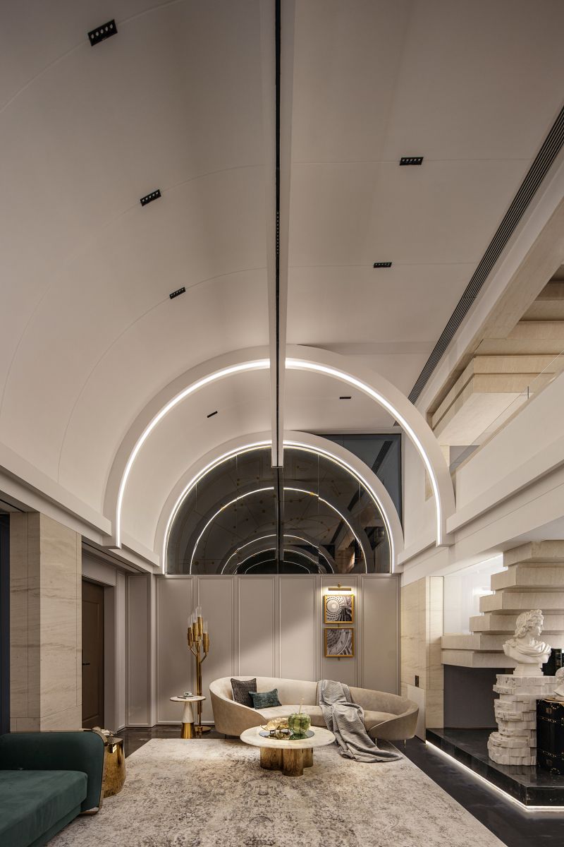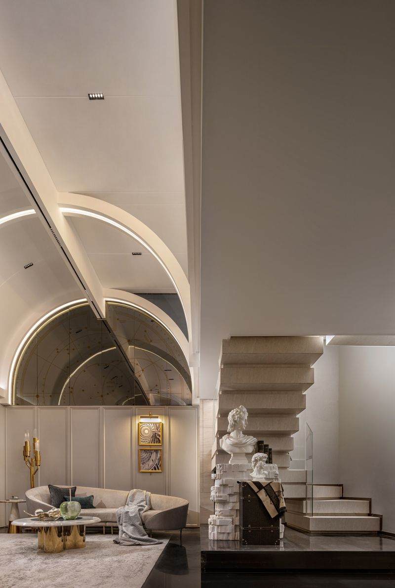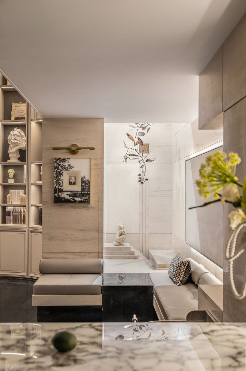 The space gives full play to Shakespeare's romanticism and fantasy, and strongly expresses the owner's life ideal. The entrance gives relax experience as soon as get home, multi-function layout is easy to storage. The living room is an important reunion place for domestics which can be both lively and quitely. Marble and metal blend with the softness of cloth to form a unique beauty. The overall space adopts modern and elegant design language, presenting an international aesthetic vision.