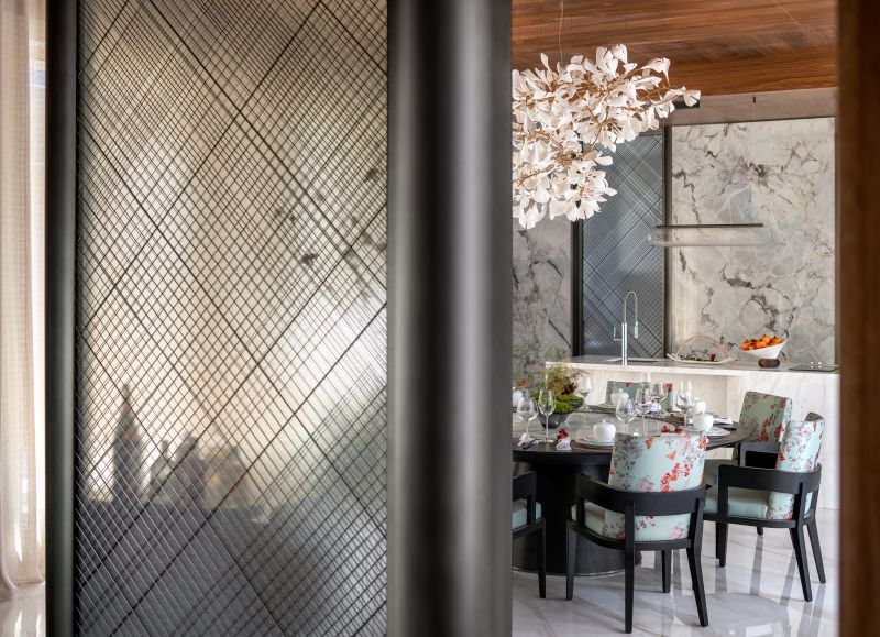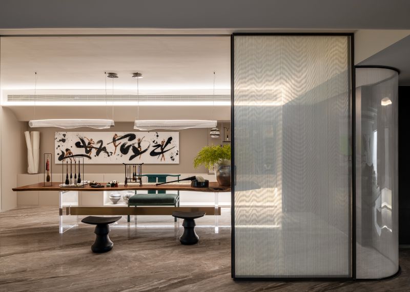 Natural resources abound in Nanchang, as does its rich cultural deposit. Upholding the design philosophy of “East Feeling, West Charm, Inheritance and Innovation”, we are able to take advantage of the regional traditional crafts and humanistic sentiments while viewing traditional Chinese aesthetics from a contemporary western perspective. In this case, the designer illustrates the current urban high luxury life aesthetics through the notion of "living toward the courtyard" by taking the indoor and outdoor design into consideration.
