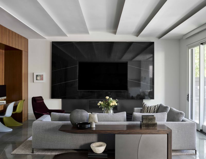 These clients were looking to create an urban refuge in a contemporary, minimalist and inviting design. This crisply tailored design composes a well-structured, modern yet warm and versatile living space for an active family of five.