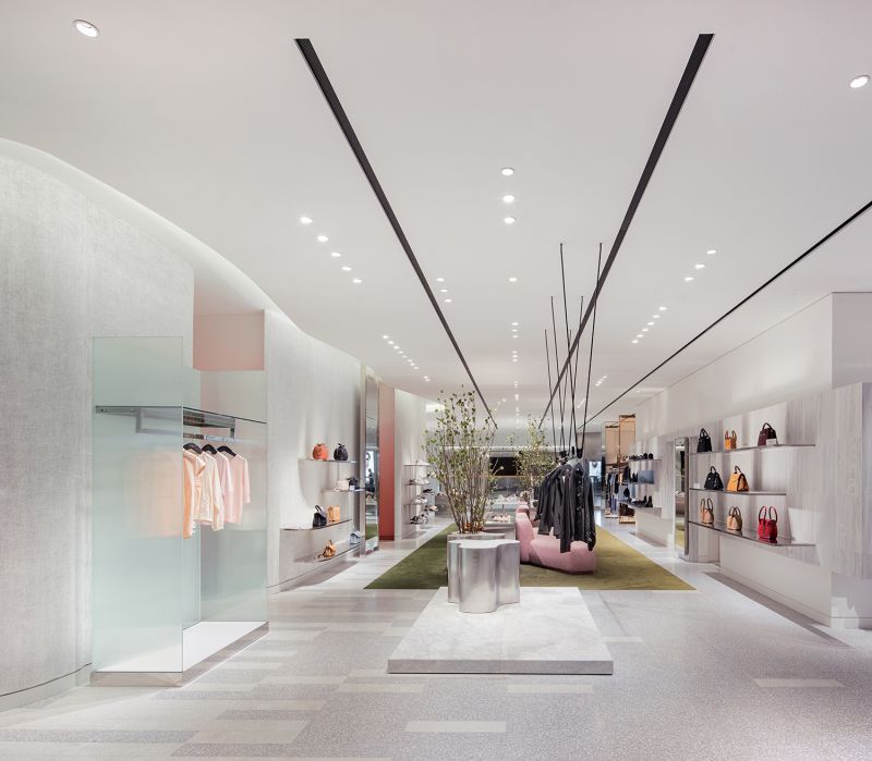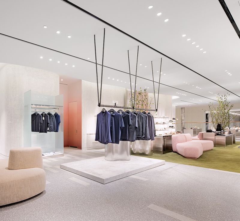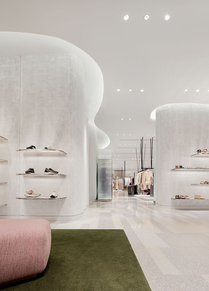 Three floors and a waterfall garden were designed for this project. The vision was to introduce a new concept in shopping environments while redefining the future of retail. The solution was inspired by Seoul’s surrounding nature. A green concept extends to the whole environment with each floor offering its own dialect of experiences and visual displays where nature is represented in various forms via contrast of materiality, translucency, color, and reflectivity. Art, nature, design, and fashion collide to create a unique perspective on how common experiences like shopping can be enhanced.