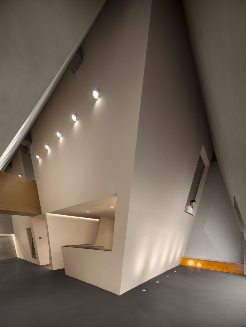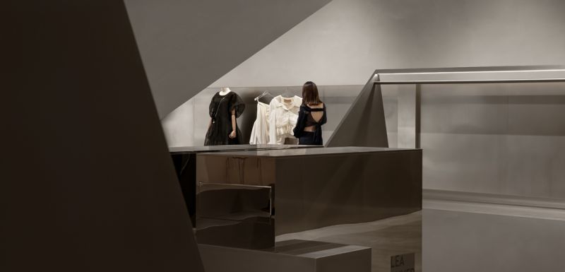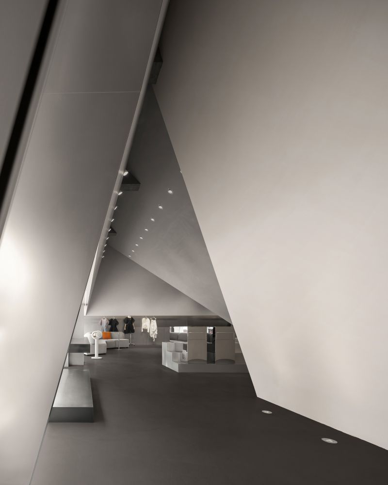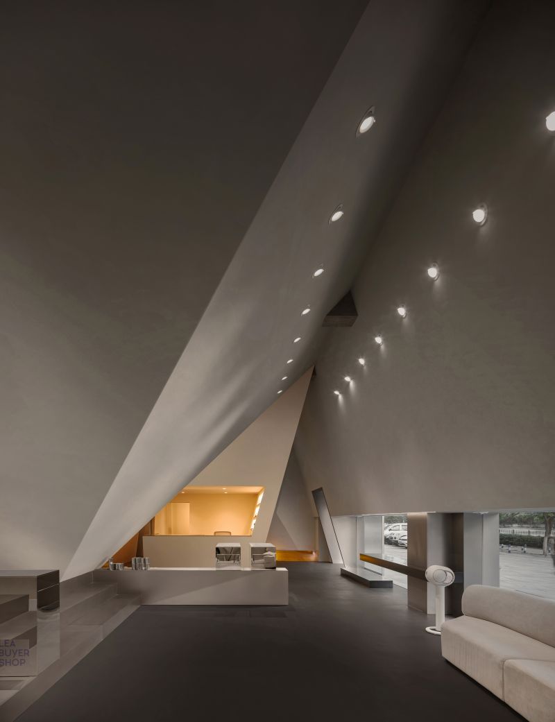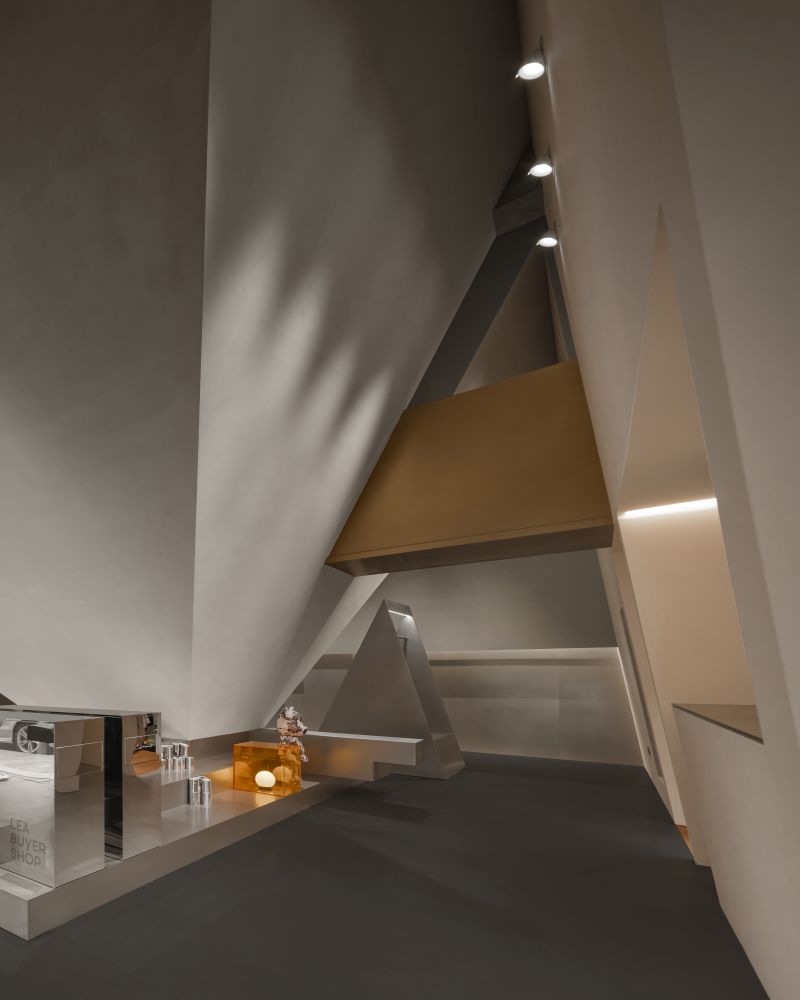 The design challenge is to renovate a space located in a residential neighbourhood into a shop with distinctive features to draw customers in. A reversed pyramid is inserted into the existing space to hide a column in the middle. Inside the pyramid is the mezzanine and outside is the shop. The shop area is thus maximized leaving the mezzanine fairly sizable. Walking around the shop, the pyramid constantly denies a visual clue, and a visitor's spatial experience becomes one of discovery. Under the age of online-business, the design sought a physical space of incidence and serendipity.