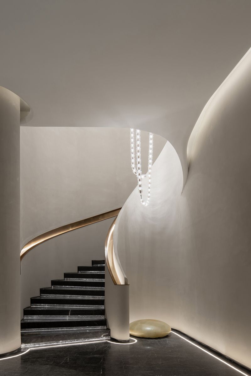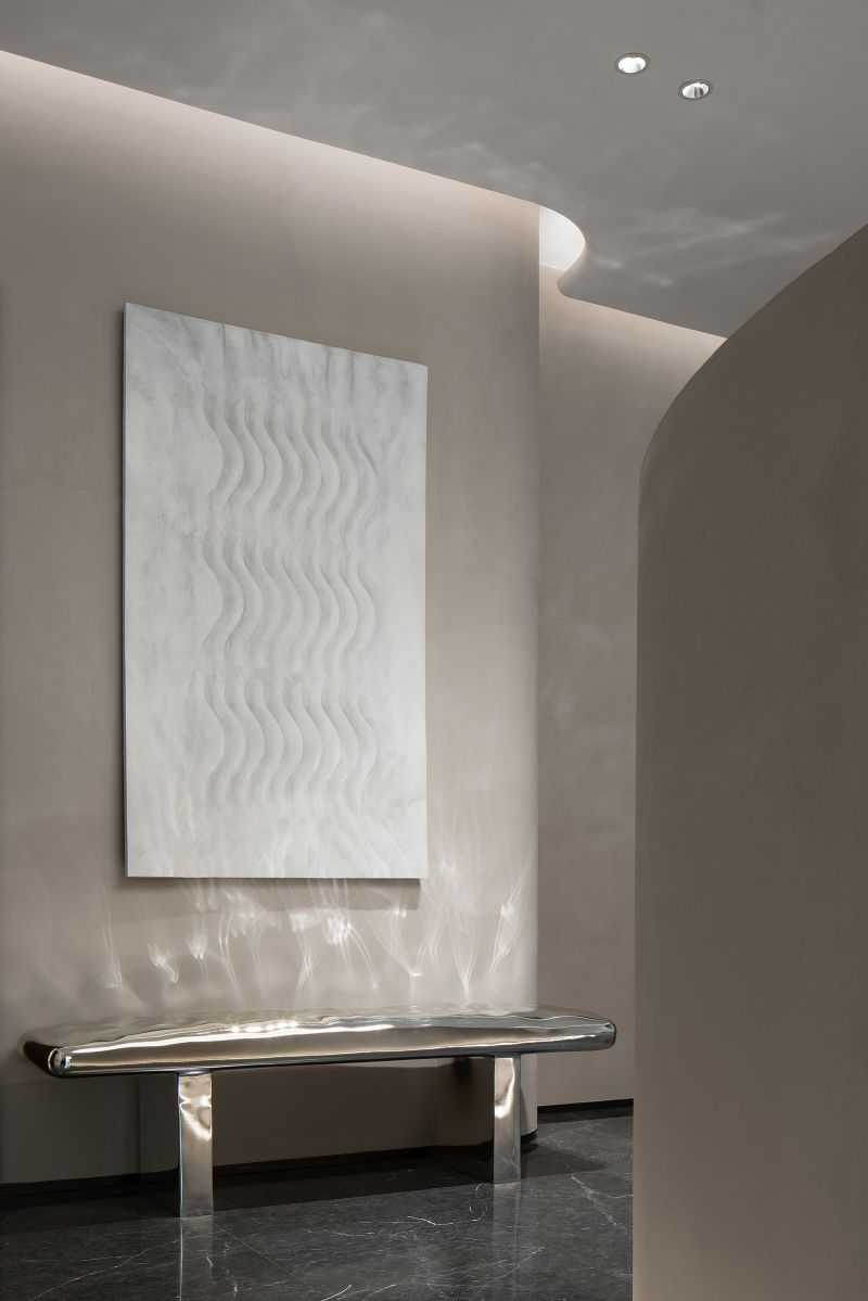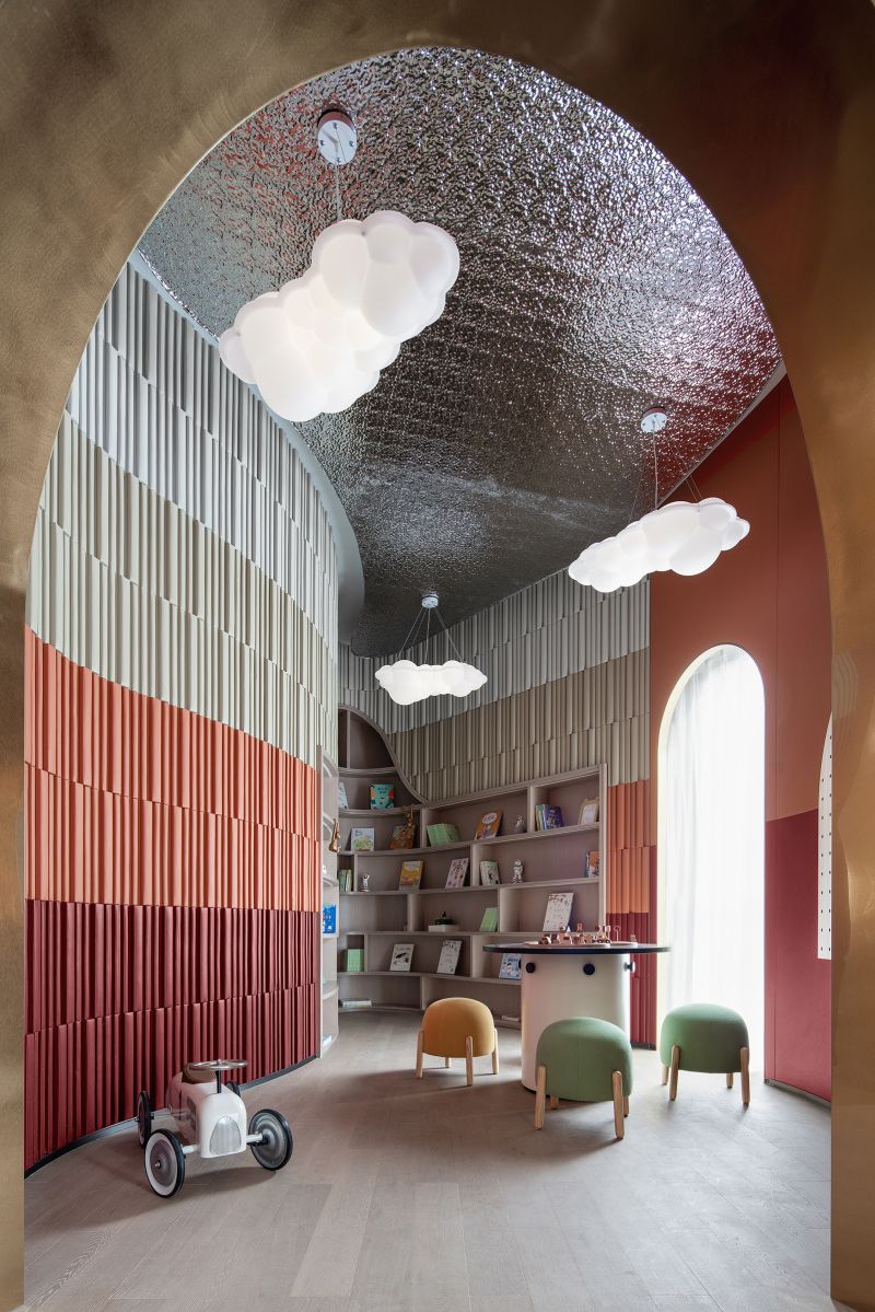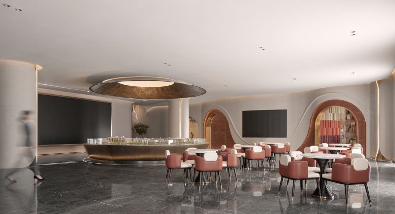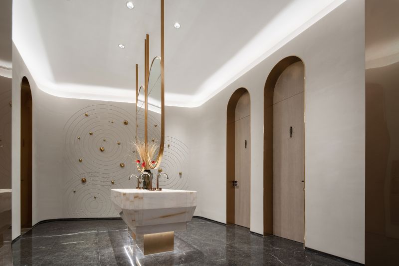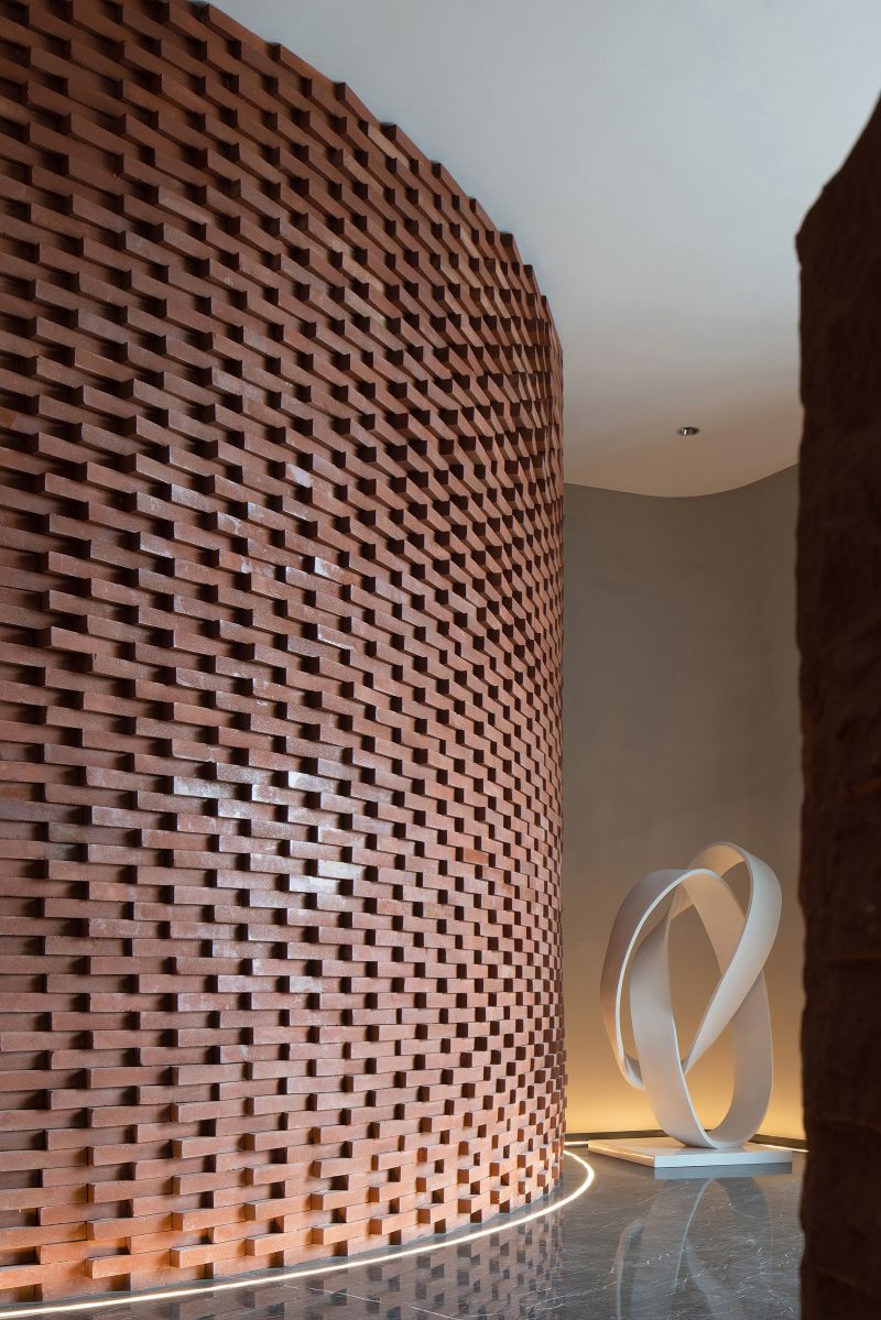 Taking inspiration from life, aesthetics, love and attitudes, the design team create a visual feast where time seems still by abandoning the hustle and bustle of the city. The arch elements is throughout the whole space. The echo between the red bricks and the round arch door further extends the sense of ritual of the sales offices. Taking advantage of bricks and water, and making good use of warm and cozy light, the design team create a silent and peaceful living scene for the community, and endow the space with profound cultural connotation.