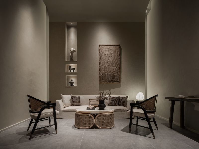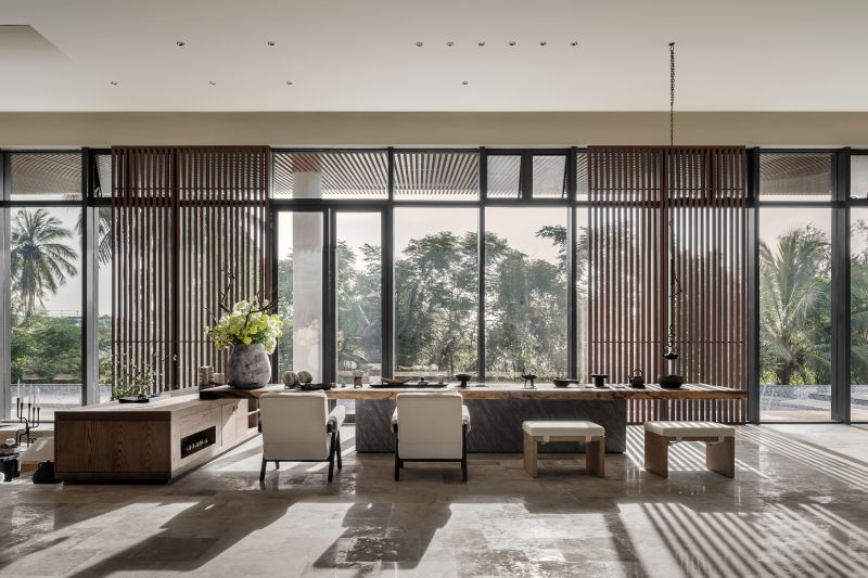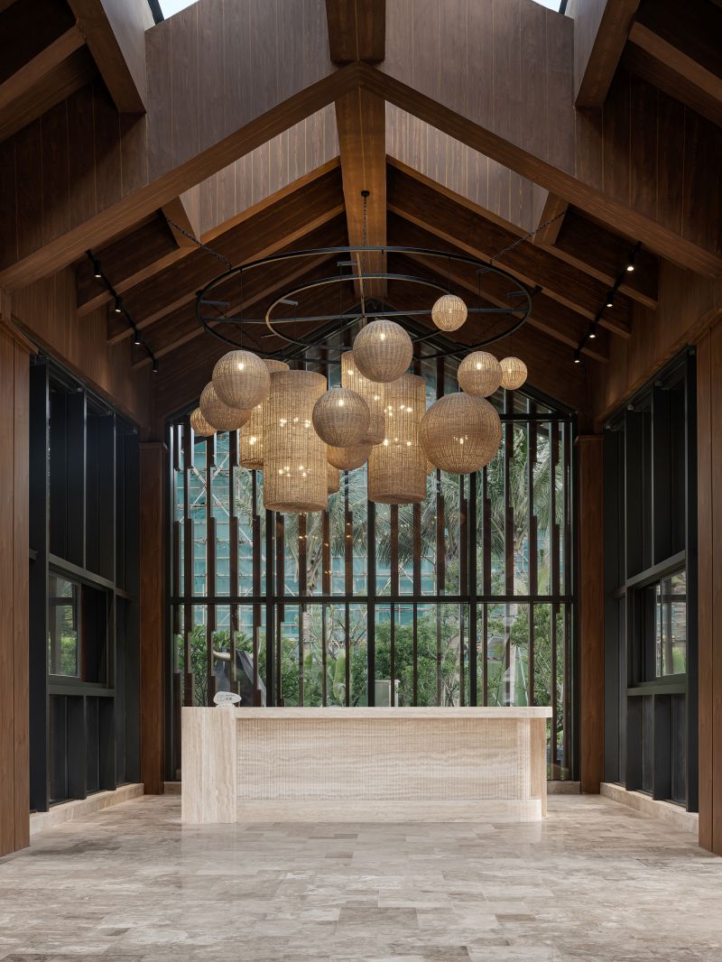 The main goal of the project's design is to make tourists aware of the "natural beauty" found in the Wenchang landform and the courtyard area created by the original village ecosystem. In order to maximize the integration of nature into the area, the design team integrates natural materials to blur the line between inside and outdoors while maintaining the overall aesthetic of the space. The use of materials like logs, rattan, and stone maintains the rugged texture of natural surroundings, giving the expansive field a steady and composed emotional environment.
