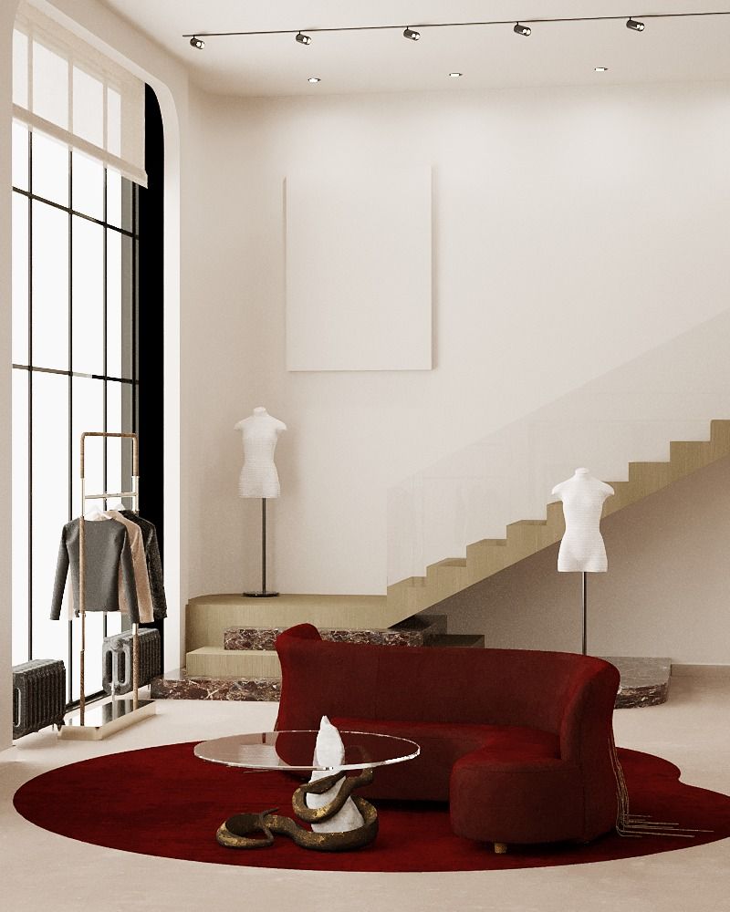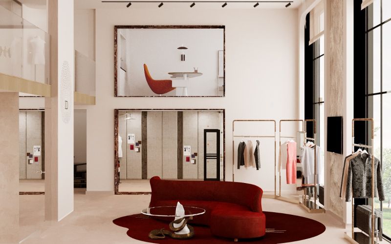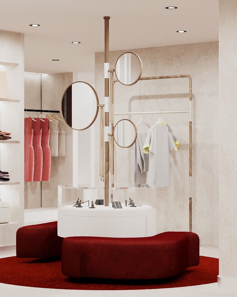 The goal of the concept of the showroom was to show the uniqueness of the brand through the personality of the founder and fashion designer Zarina based on analysis of the buyer’s portrait and business strategy. The founder was named after the Queen of the Saks-Zarina and was born in Tselinograd City subsequently called Nur-Sultan.