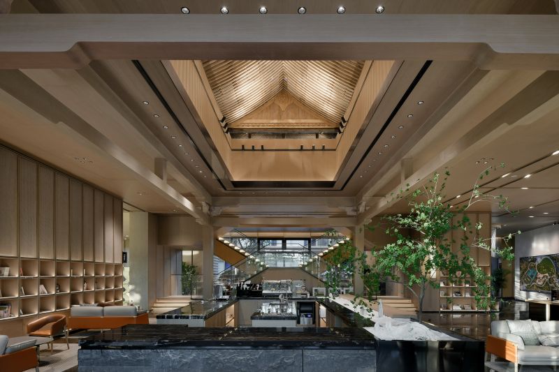 In this design, the open space function division is used, and the brand exhibition area is paved. Here, you can enjoy the ancient folding fan and see the contemporary art. The overall space adopts warm color style and artistic design expression, creating a warm and beautiful atmosphere in every space. The vocabulary of simple straight lines is surrounded by soft lighting atmosphere, which creates a warm and beautiful atmosphere, expresses the beauty of simplicity, warmth and nature, and is full of silence and poetry.
