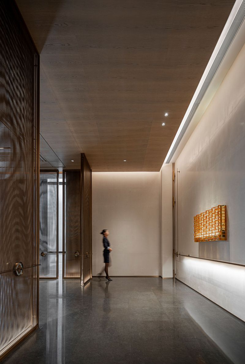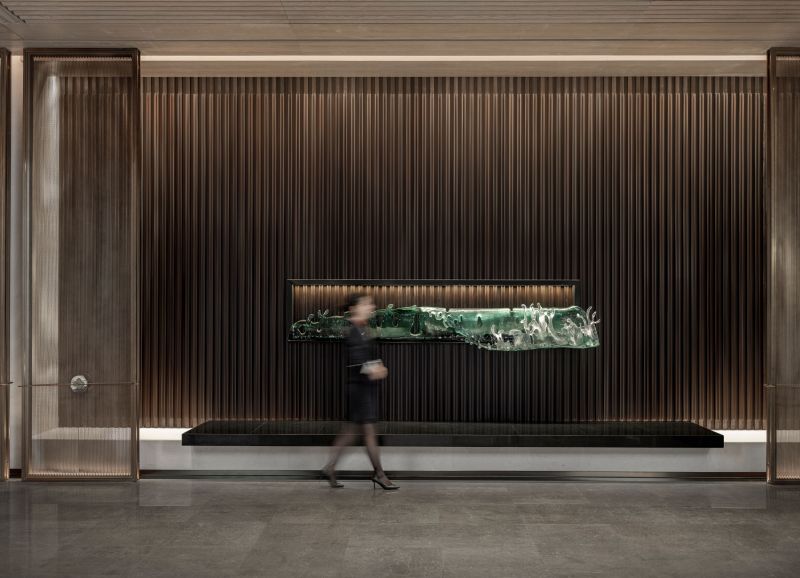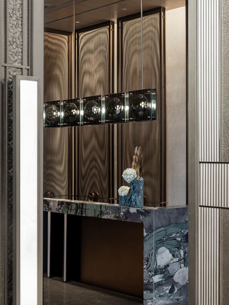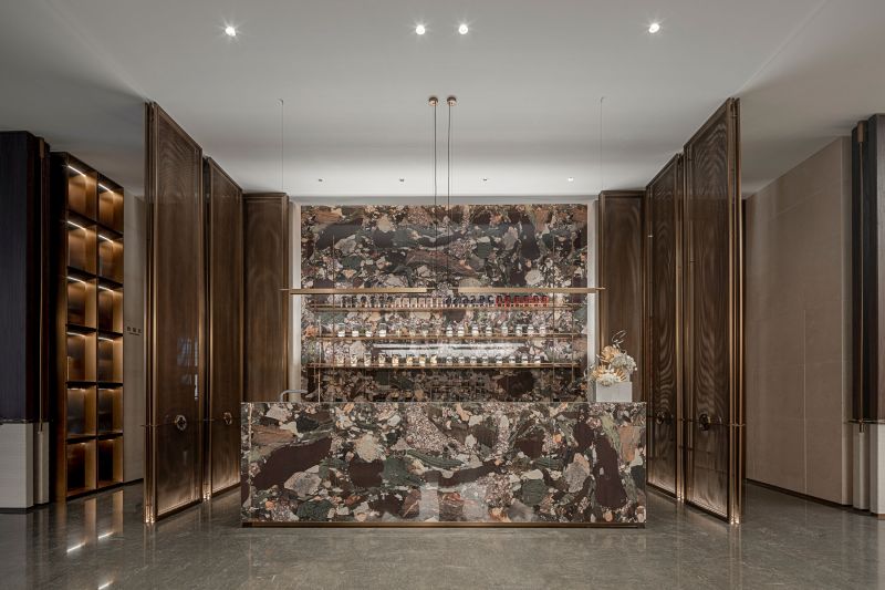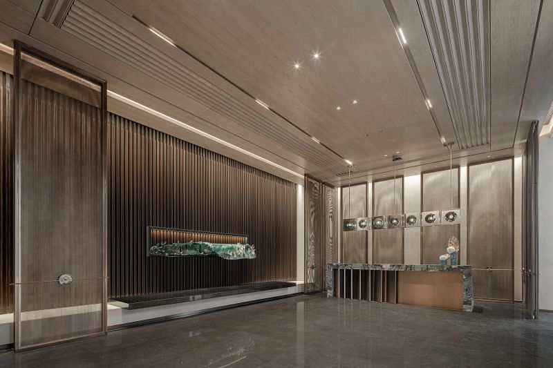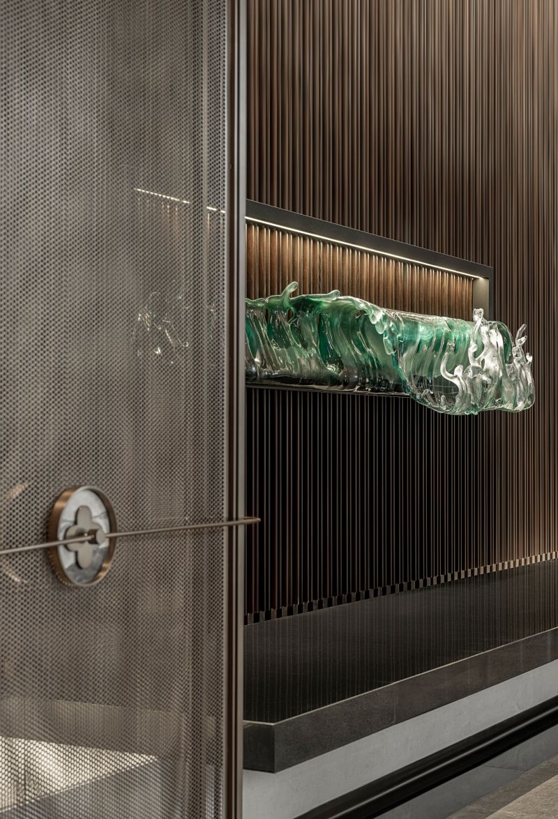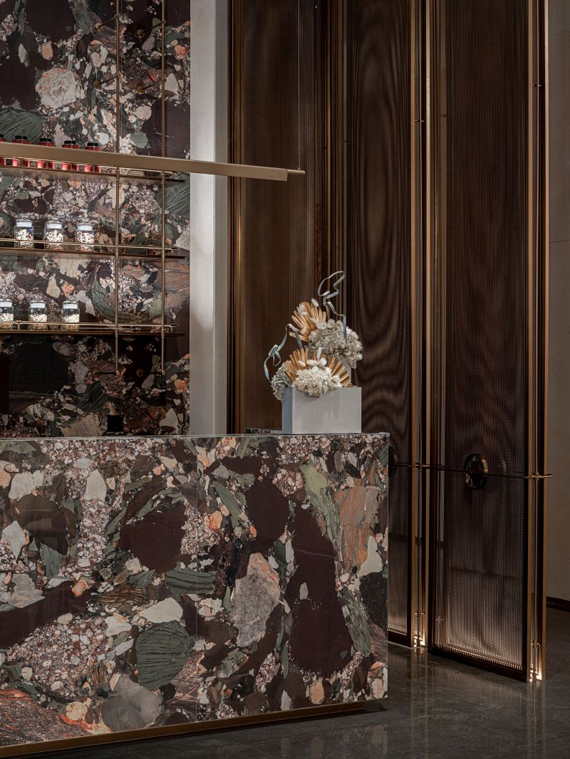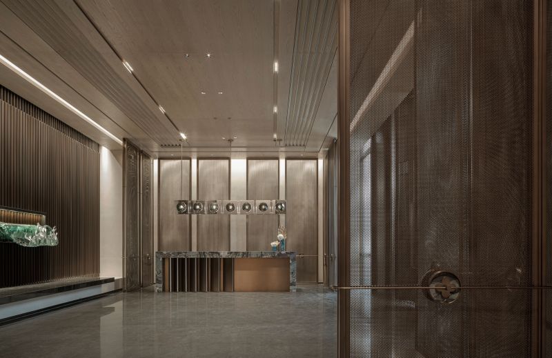 The idea of Van Cleef & Arpels is taken as the basis of design concept. The tones of waves and gemstones are taken as the creation idea. The space functions are divided by using various stone material, metal and matrix screen, so the functionality of the space is improved and the sense of hierarchy of the space is enriched.