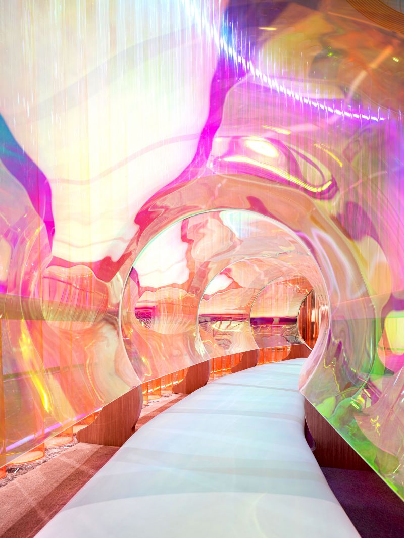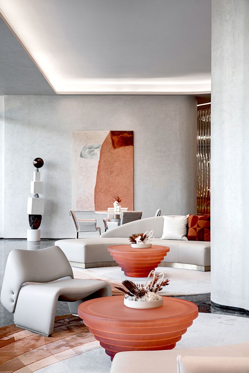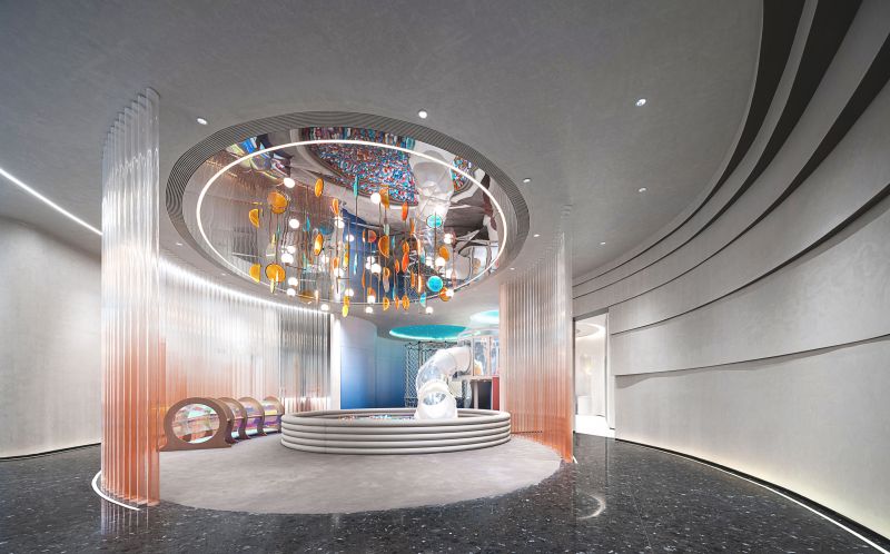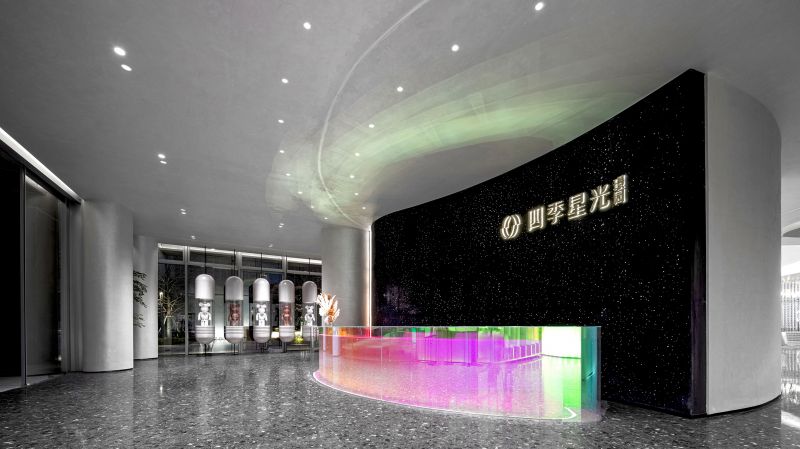 Taking the brilliance of the sun, moon and stars as the main line of the space design, the designer outlines the transformation of time and space to reflect the future of new life. By constructing the starry sky with ultra-modern and simple aesthetics, the designer tries to create a futuristic aesthetic space for people in busy metropolises. In terms of design, the designer mainly creates tranquility and nature through the layers of rich colors and materials, and abandon traditional heavy commercial design of sales offices to create a free and comfortable environment for visit and negotiation.