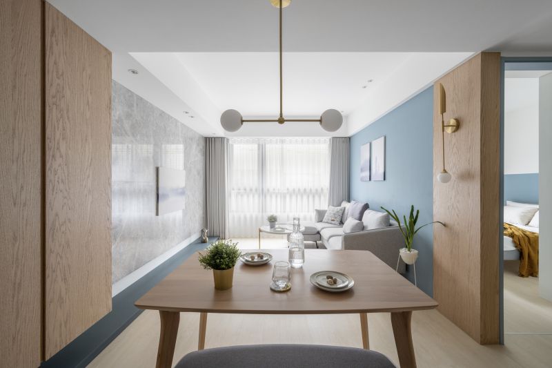 It's a small model home targeted at young buyers,with actual footage of less than 70 square meters. Spaciousness,practicality of the space and maximization of its functionality are the three main goals of the design.Even with a limited budget,its precise floor plan contributes to a visual effect of spaciousness while also takes into consideration its full functionality. A tour in the apartment gives the potential buyer a first-hand experience of actually moving around in the space so as to carve out a vision of living here in the future,which is the challenge and yet the appeal of this design.