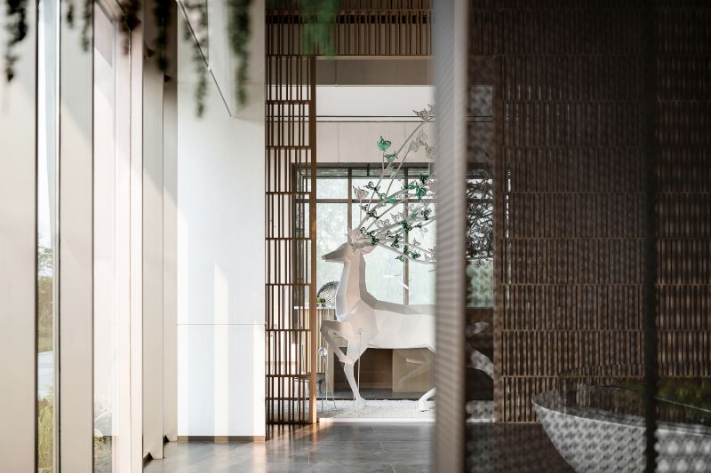 ,格林童话、森林和自然的美丽片段巧妙地结合到不同空间的风景中,营造出奇幻童话天堂。景观融入建筑,艺术遇见生活,大面积法式窗引入自然风光借用和光影秩序,打破传统空间的刻板印象,呈现出不一样的潮流、艺术和新兴的自然体验空间。