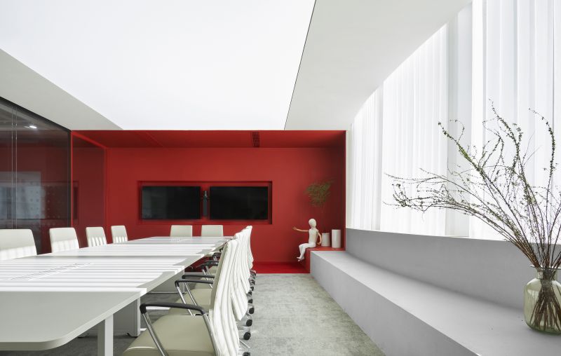 We take the most confident climax of La Cinéscénie in French’s hearts as an element in our design concept. Finally, in the overall spatial arrangement, we divided the plan into three sections, and define the moving line and functional zoning with blue, white and red as the main style.