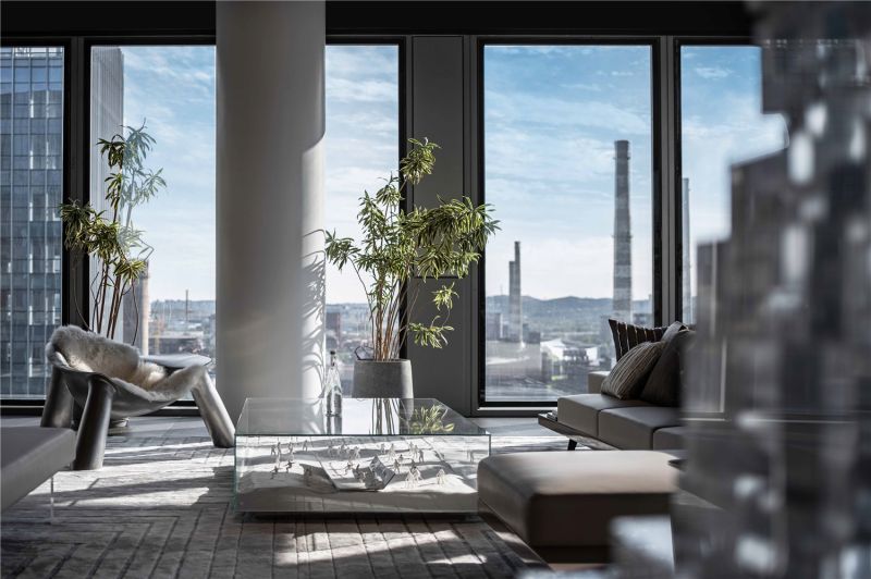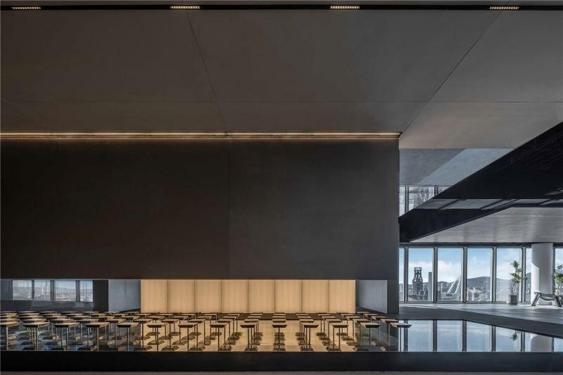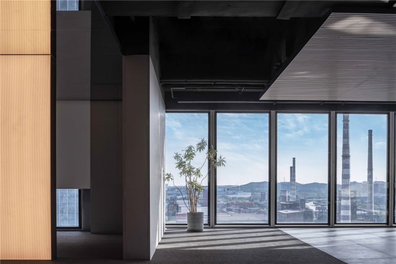 This is an office, is close to Beijing Shougang Park.Overlooking from the project can glance the industrial and cultural charm of Shougang Park. The challenge of the project is that the internal space is spacious but the height is only 3 meters, resulting in a sense of pressure and poor spatial experience.Glass and stainless steel will magnify the space so that it can be extended indefinitely, creating a free and boundless space.An open and diverse office provide a more connected, collaborative environment that reinforces a common culture, fosters innovation, and attracts top talent.