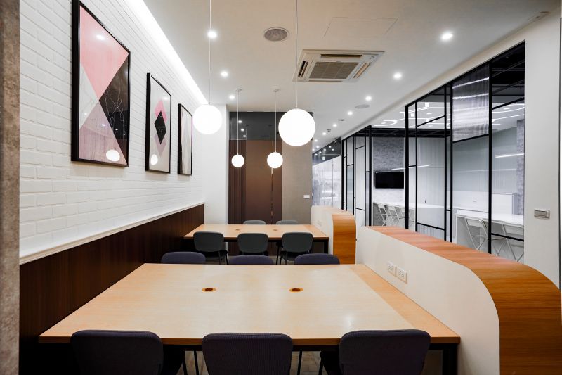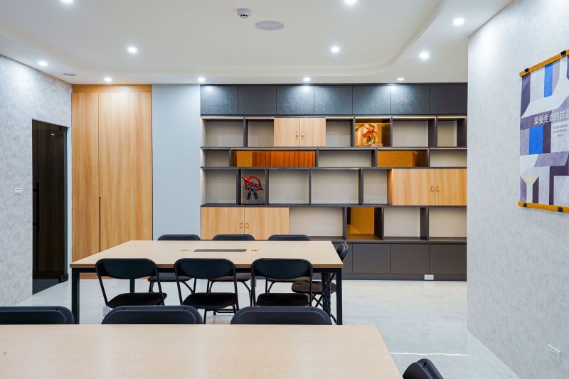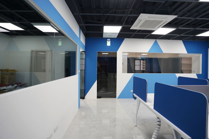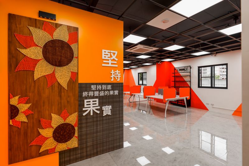 As an office, the space is a blend of innovation and Christianity. Since the client is a company that operates a composite brand, the designer used color flash to distinguish the theme of each area. Each area has its representative color, which creates an intuitive visual and fresh feeling and also fits the cultural characteristics of the start-up company. In addition, the designer planned a large lecture room on the sixth floor, and the cross on the side indicates that the client is a devout Christian.