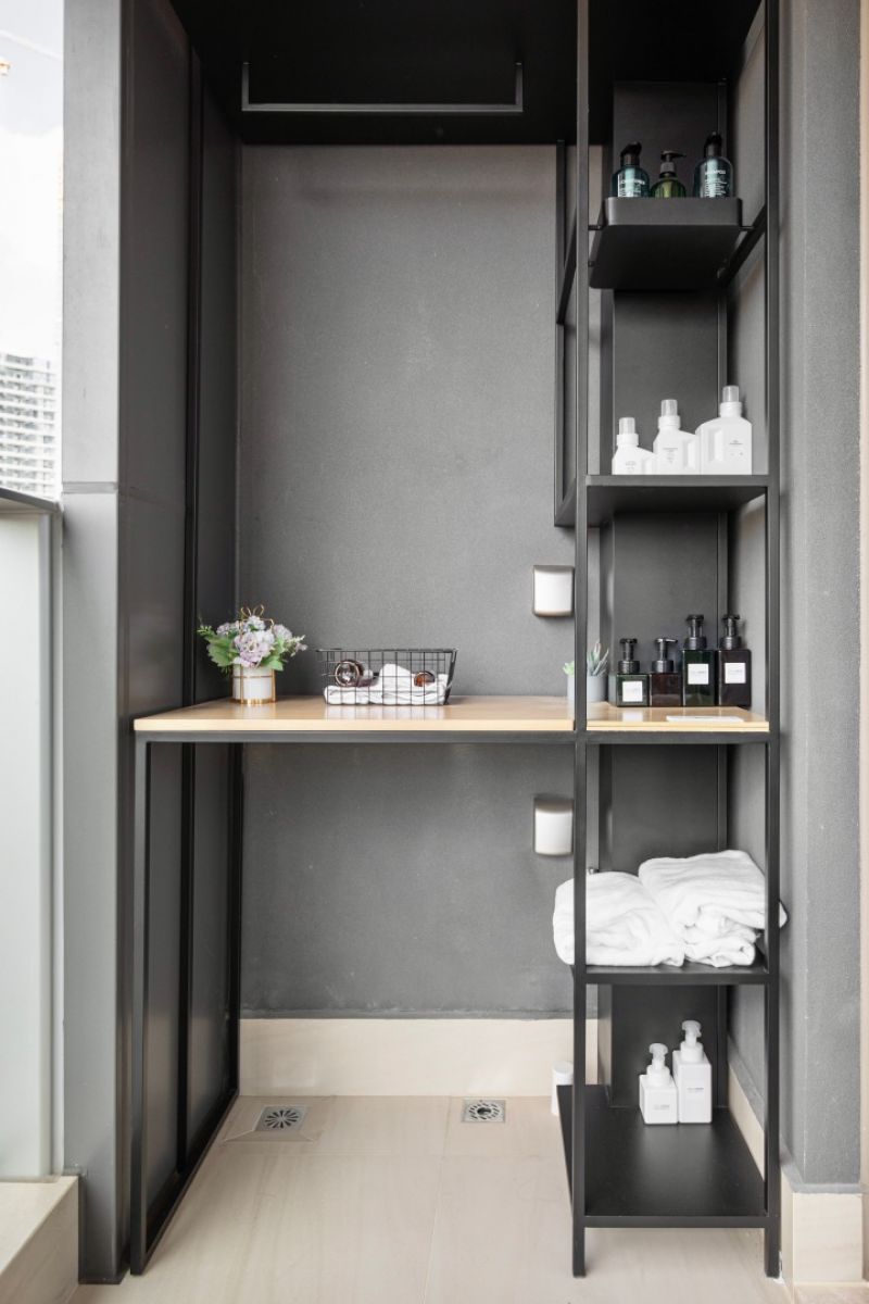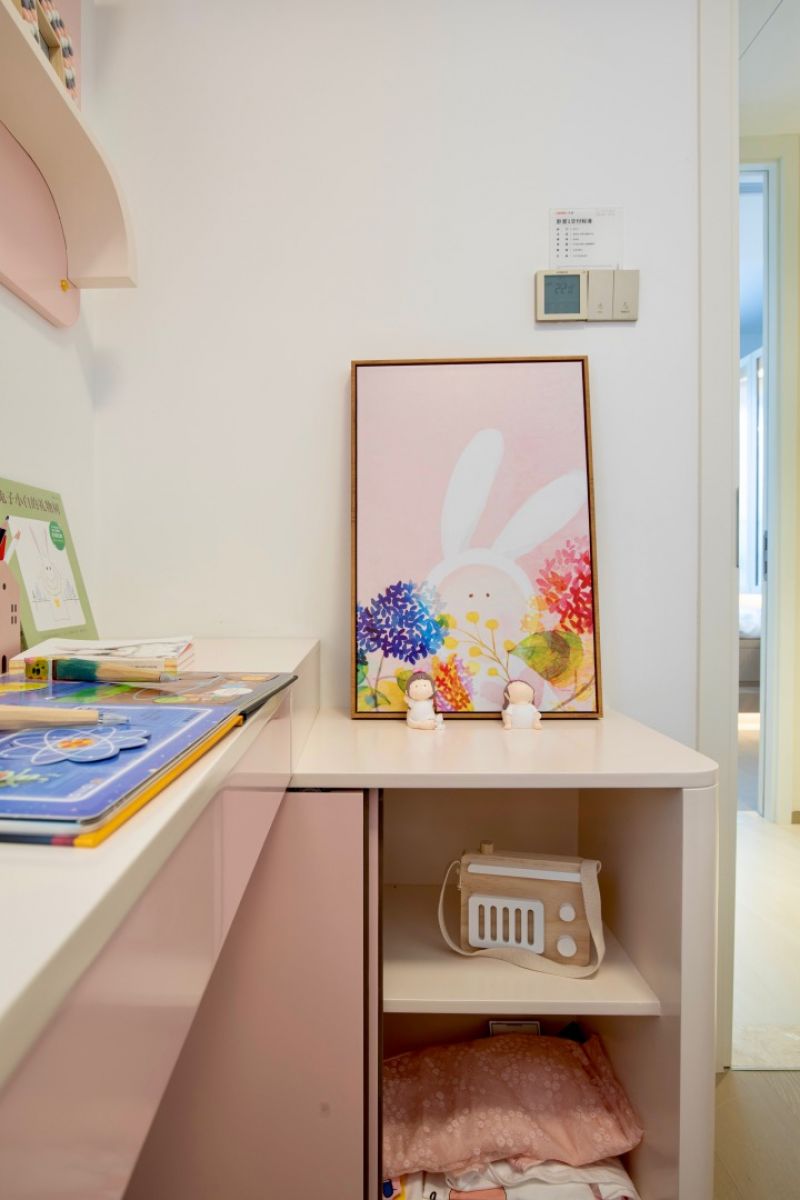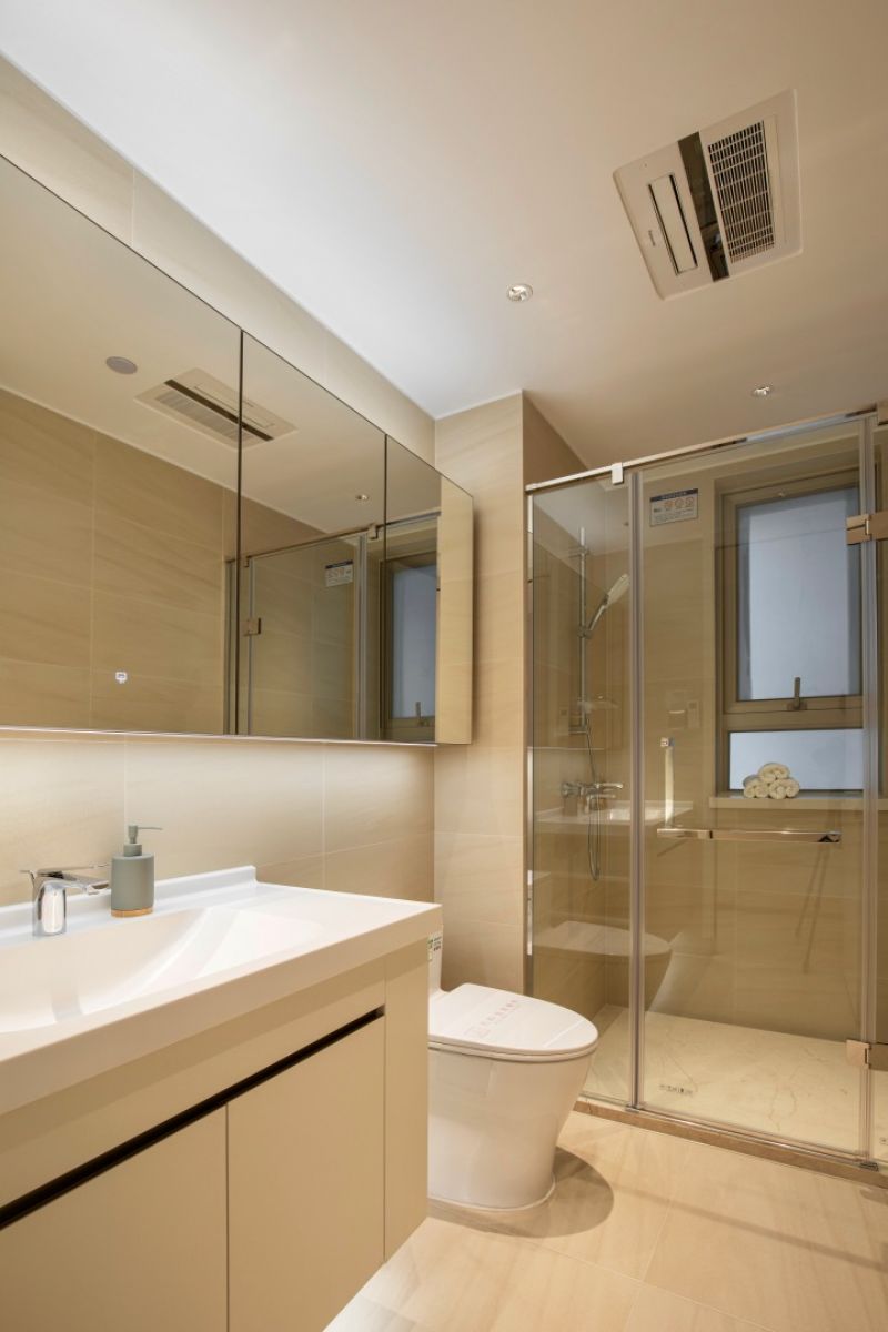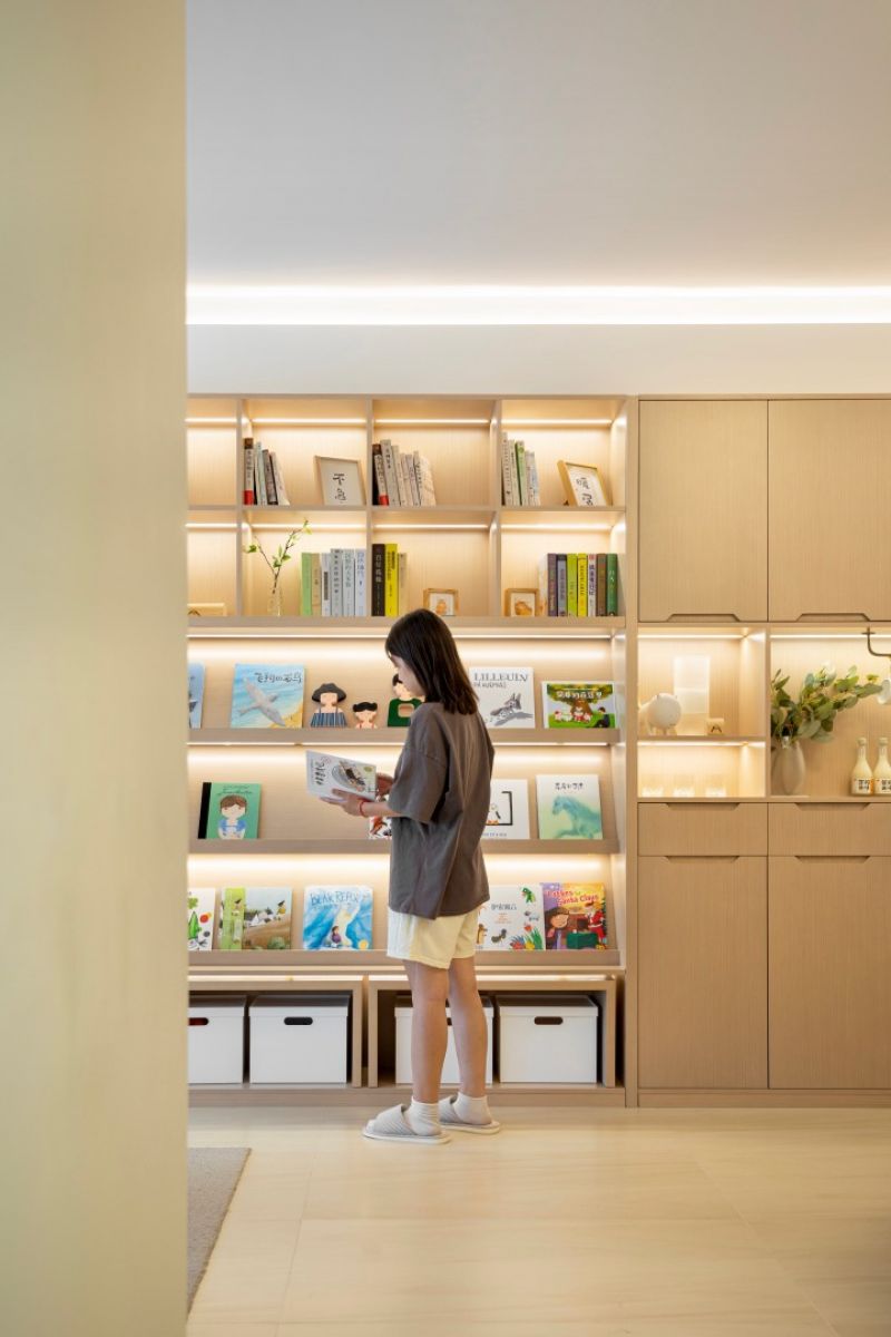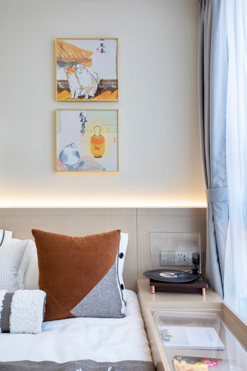 The living room is designed to meet the N+1 living scene and provide super storage space. Under the visual sense of the interaction of wood, fabric, corrugated glass and stainless steel, the details of life are greatly improved, and a sense of peace of mind is injected into life.