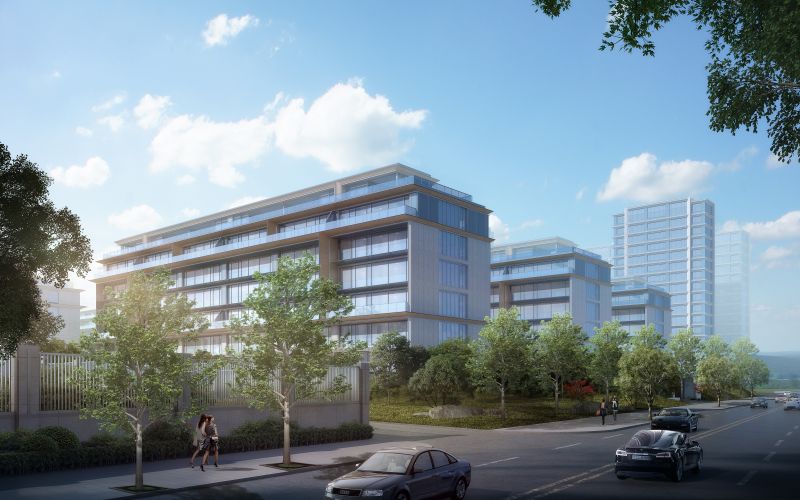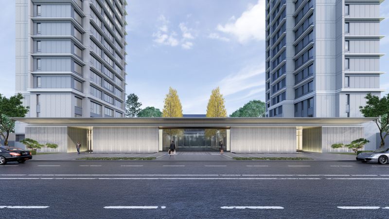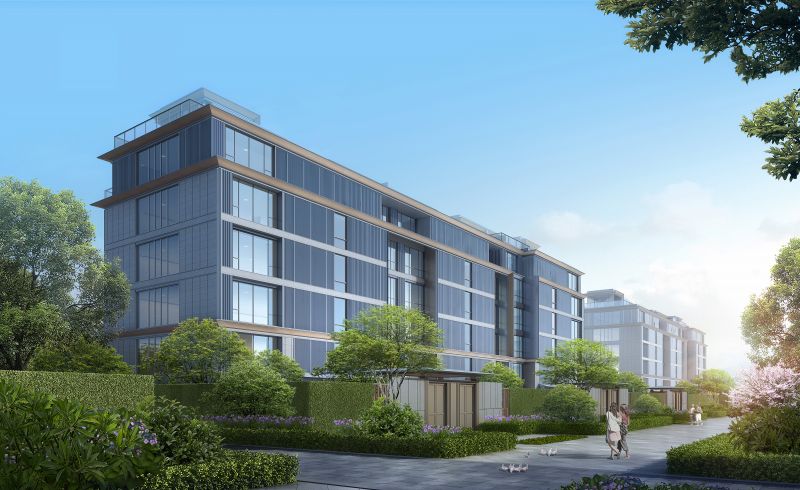 For the facade design of both high-rise buildings and stacked villas, the project refers to the upturned eaves and cornice brackets of historical palaces in Xi'an. It innovatively transforms the overhanging eaves on traditional Chinese pitched roofs into layers of lightsome affiliated eaves, which are made of aluminum plates weighing only one-fifth of marbles. This enriches the sense of layering of the residential buildings. As for the design of garden landscapes, both Chinese and Western gardening elements are incorporated.