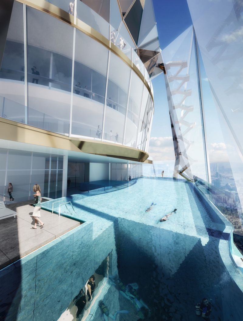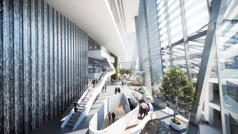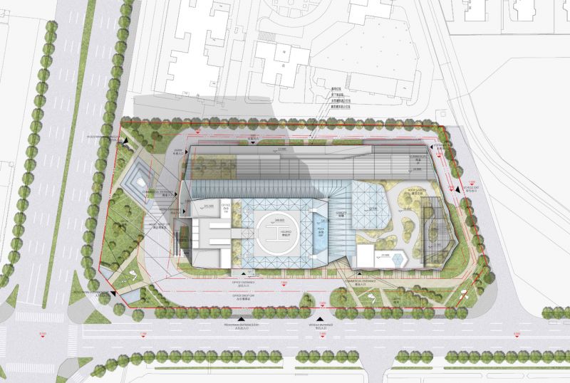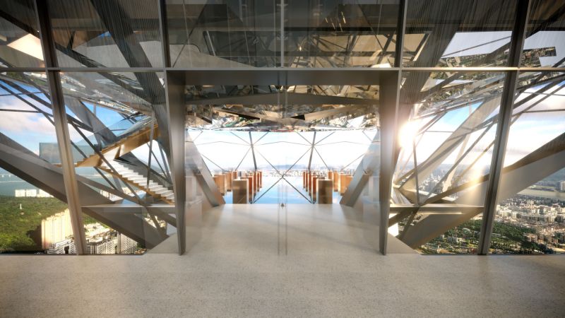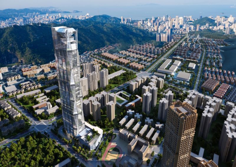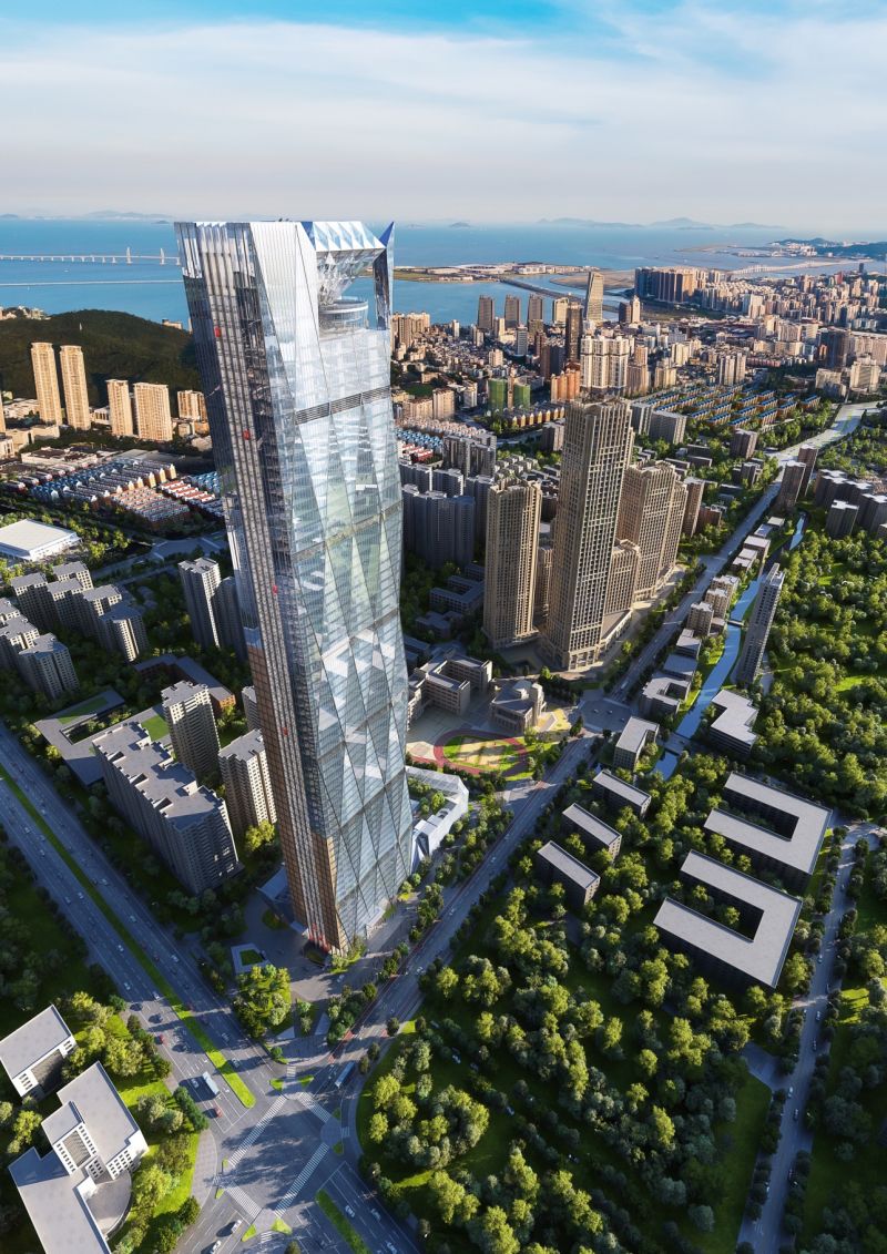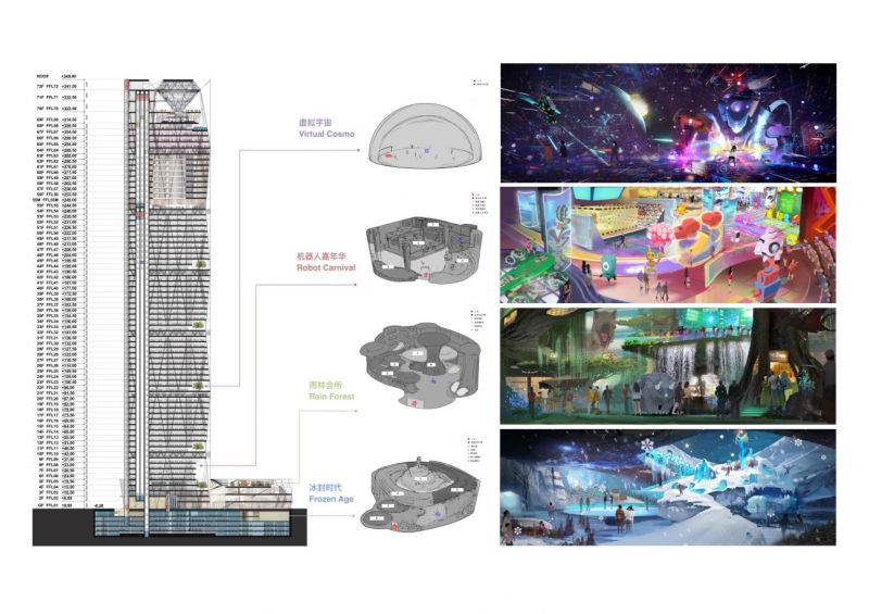 The world’s first vertical entertainment skyscraper complex, 238000㎡,350-meter high, fully offset-core structure sustainably designed for a massive flexible, effective and eco-friendly commercial space. The building possessed the shape and façade through diamond cut geometry design elements, has the world’s highest facilities with an overhanging infinity snorkeling pool affiliated to a gem museum trading center on the top and the tallest panoramic elevator directly links to the semi-opened arcade in-between the ground detached podium, it’ll be the tallest landmark in Zhuhai-Macau bay area.