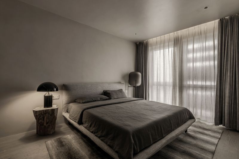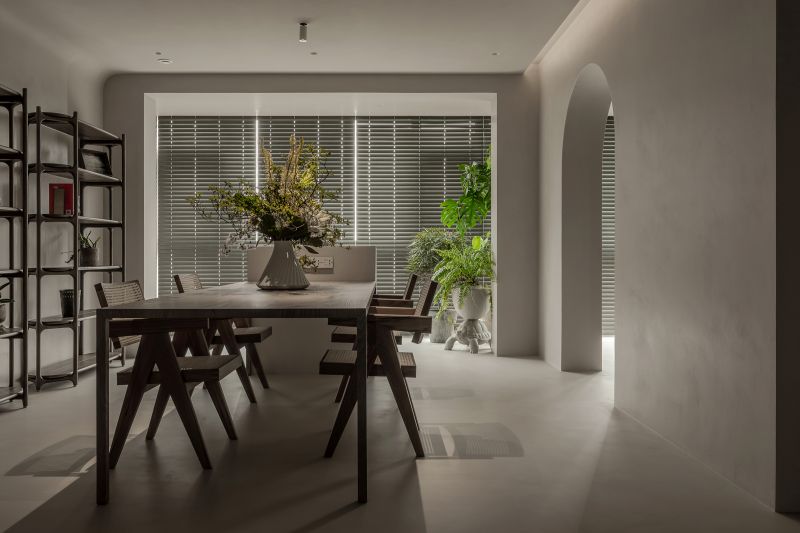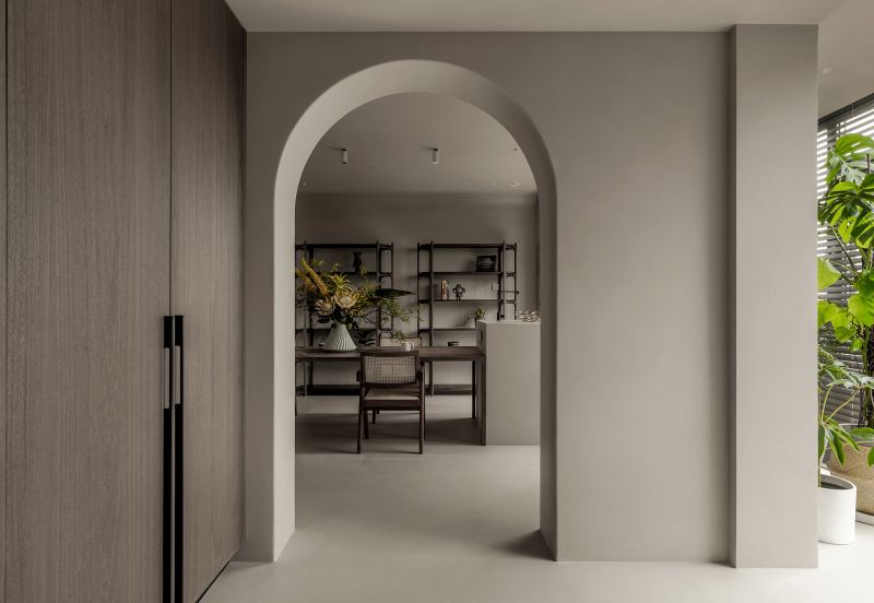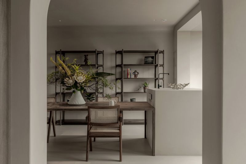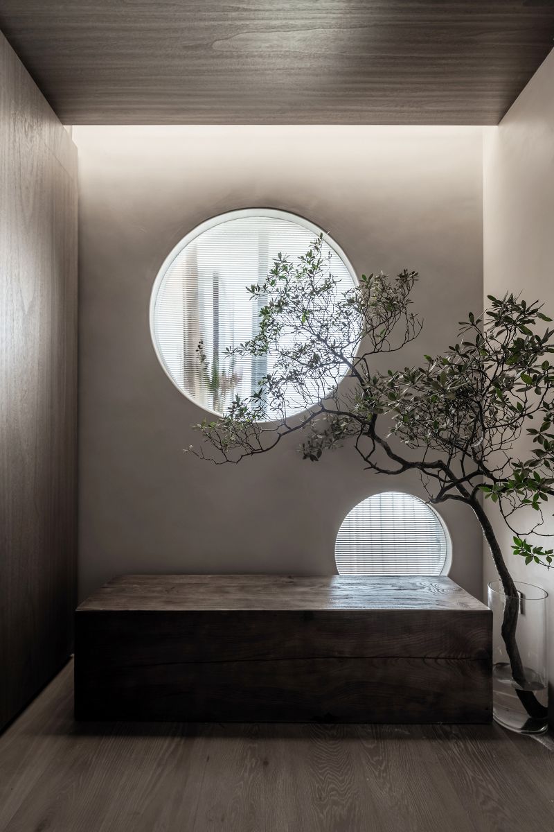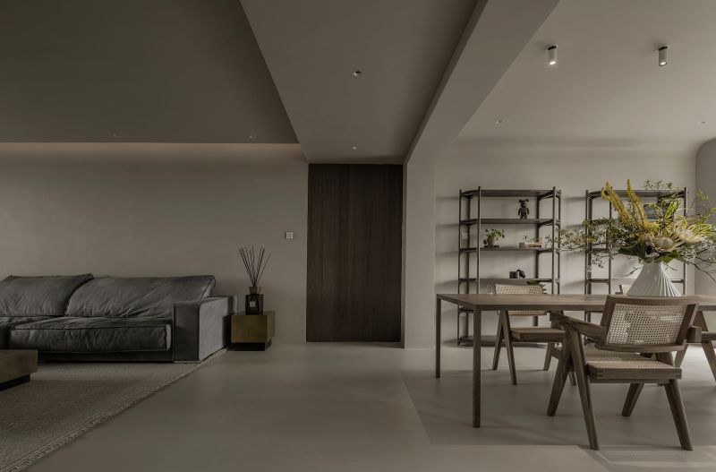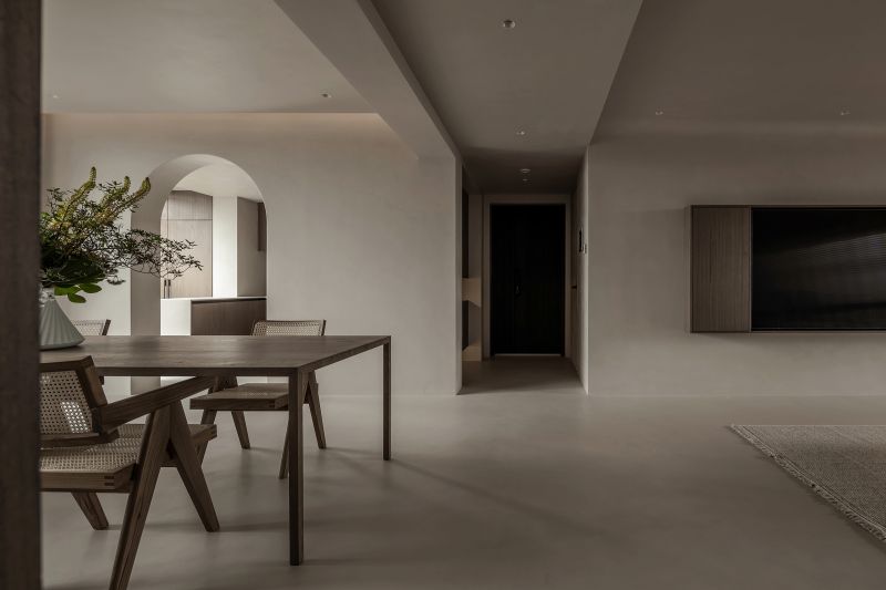This case is located in the bustling city Beijing. Taking wabi-sabi aesthetics as the starting point, the designer uses the oriental philosophy to remove the heaviness and tediousness of the city and space, making the space return to the inner resonance with people. The design of space moving line is like the director's arrangement of film time line that focuses on visual capacity, reasonable arrangement, etc. When entering into the space, we find that the designer makes a very detailed arrangement according to the different functional space of living moving line and housework moving line.