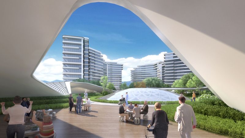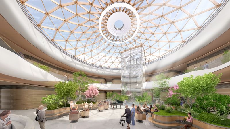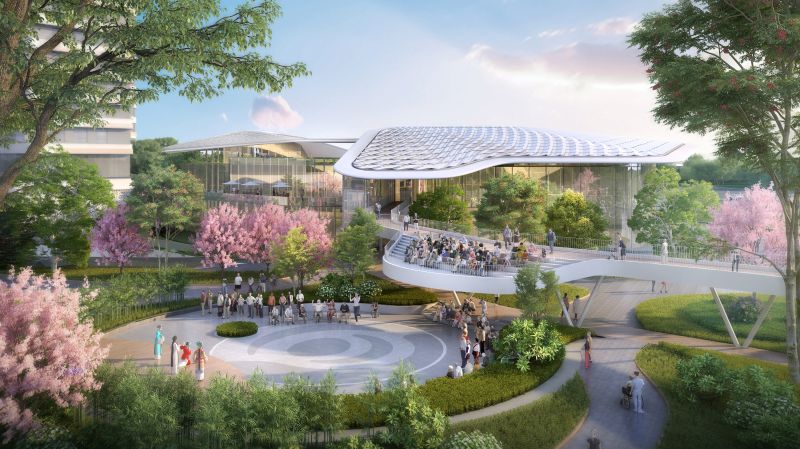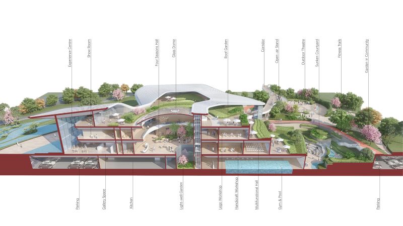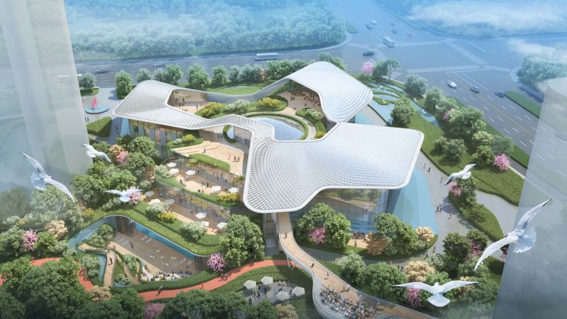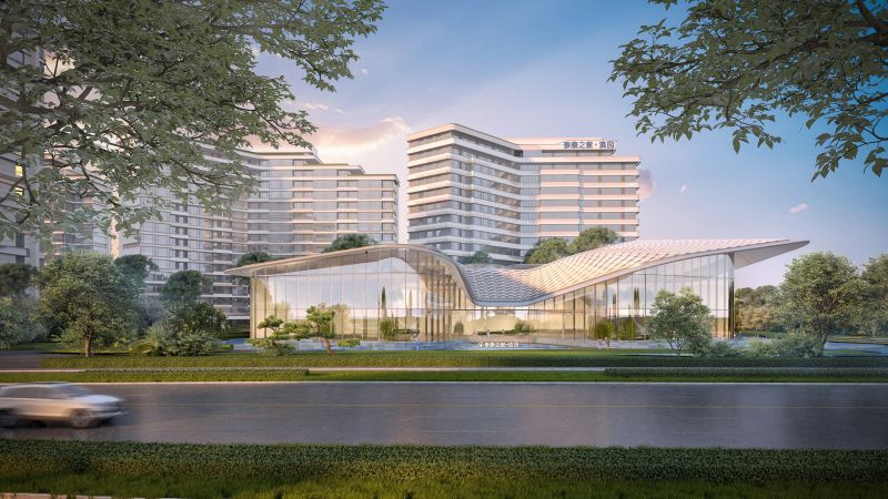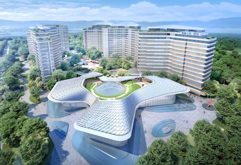 The Continuing Care Retirement Community is located in the heart of Kunming, known as the Spring City, and famous for its beautiful clouds and Dianchi Lake. The design draws inspiration from its pleasant climate and regional culture to create a garden-style wellness community that coexists with nature. The façade is inspired by the red-billed gulls fluttering around Dianchi Lake. The ceramic roof tiles are tailored to resemble dancing feathers in the sunlight, depicting the poetry of spring.The Vitality Centre is both a showcase for the external neighbourhood and service hub for the internal.