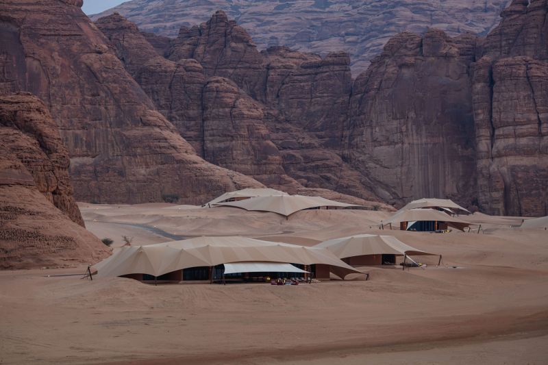 Banyan Tree AlUla features 47 new tented suites as well as public areas that include two gourmet restaurants and a luxury spa. The signature swimming pool sits in a natural crevice in the rocks, reminiscent of the Wadis which appear at the foot of the cliffs during rain spells.