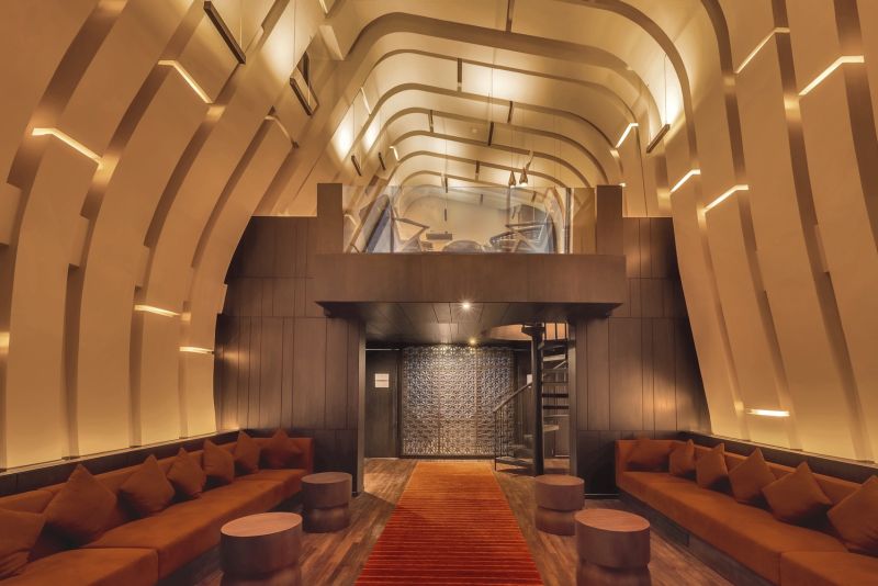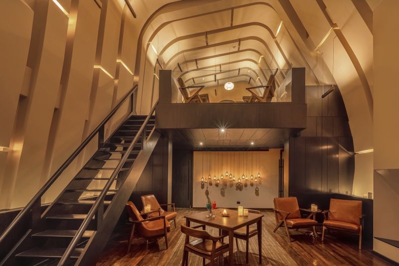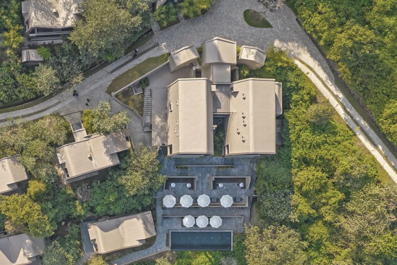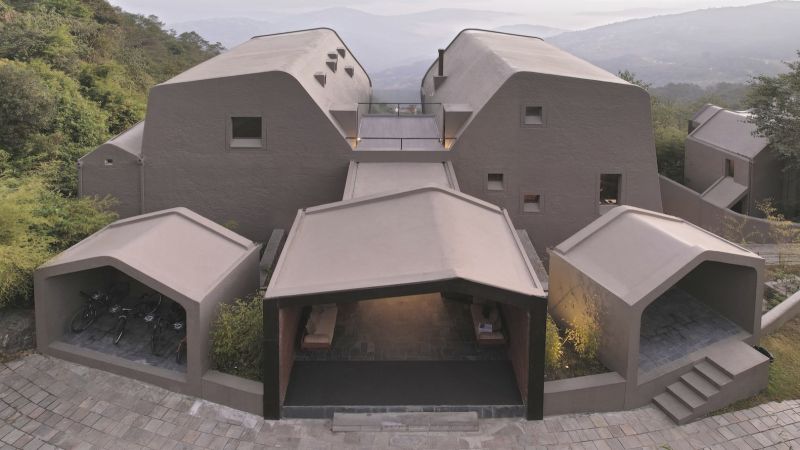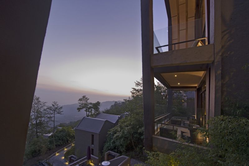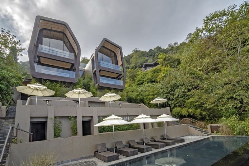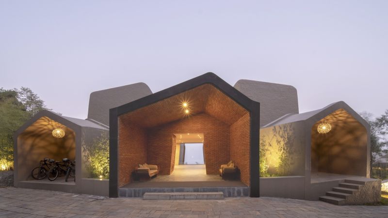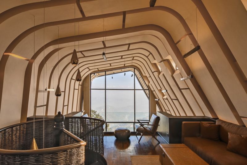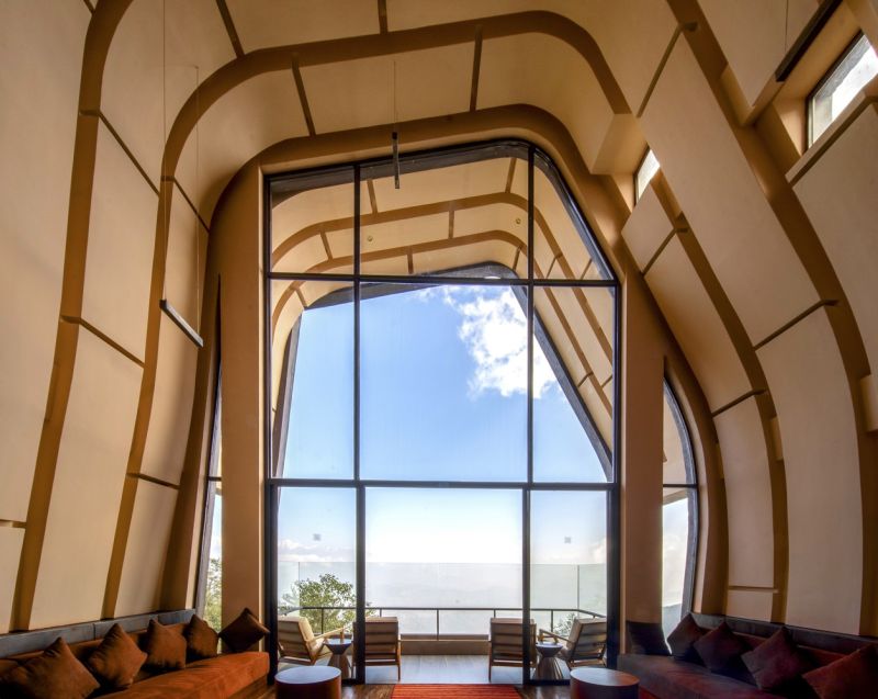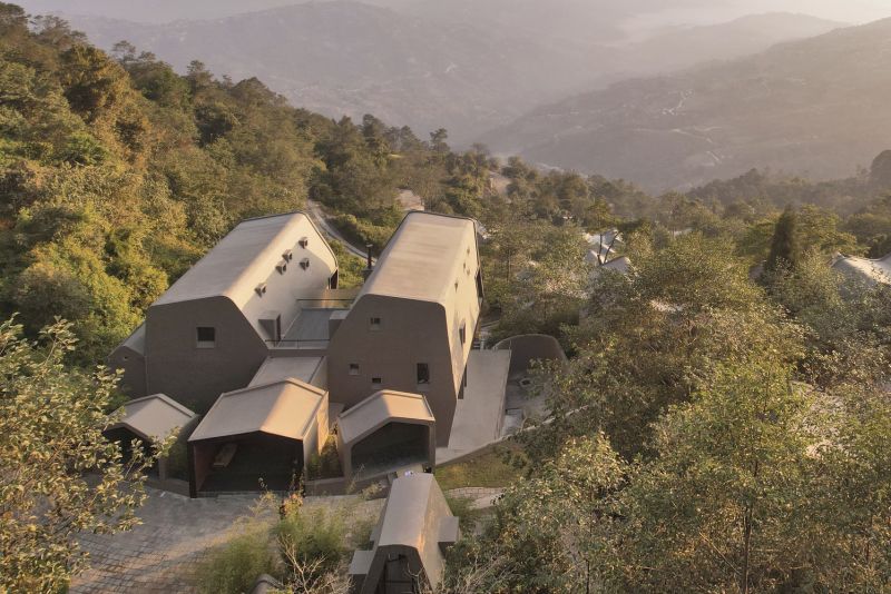 The ‘Meet and Greet” building of Kavya Resort is sculpted to witness the drama of passing clouds. Placed in the highest resort in Nagarkot, Nepal, the site experiences a dynamic moment of clear visibility, suddenly changing into total obscurity. While the two rock-shaped volumes are oriented to capture views of the Himalayas and the valley below, their separation creates the passage for the clouds – sometimes bringing the fog and moisture deep inside the building. Here, you can experience the magical moments.