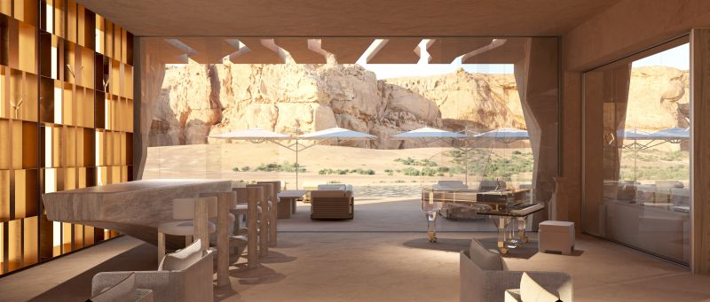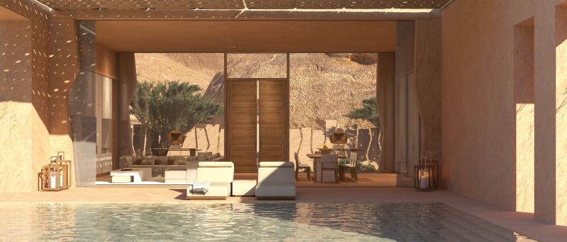 The main idea of the OBLIVION hotel design by ALTER EGO Project Group is to provide a seamless and immersive journey through nature. From the architecture to landscaping, the hotel is created to be a luxurious oasis completely integrated into the desert.