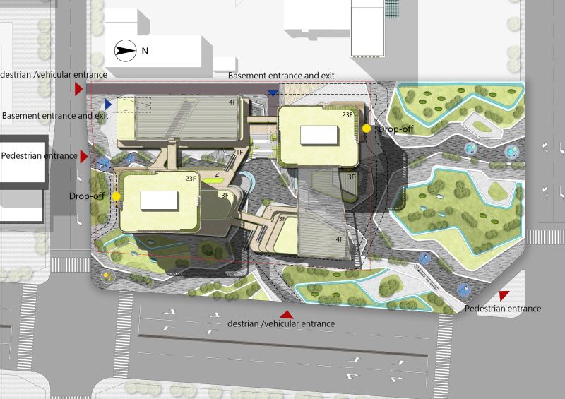 The project is located in Zhengzhou City, Henan Province, China, with a total construction area of about 130,000 square meters, including an above-ground construction area of about 100,000 square meters (27,000 square meters of commercial and 73,000 square meters of office) and an underground construction surface of about 30,000 square meters.