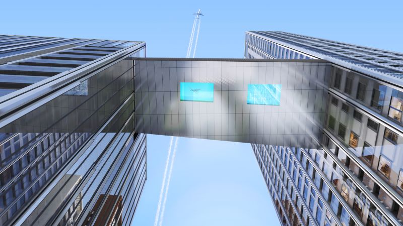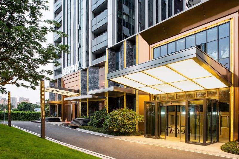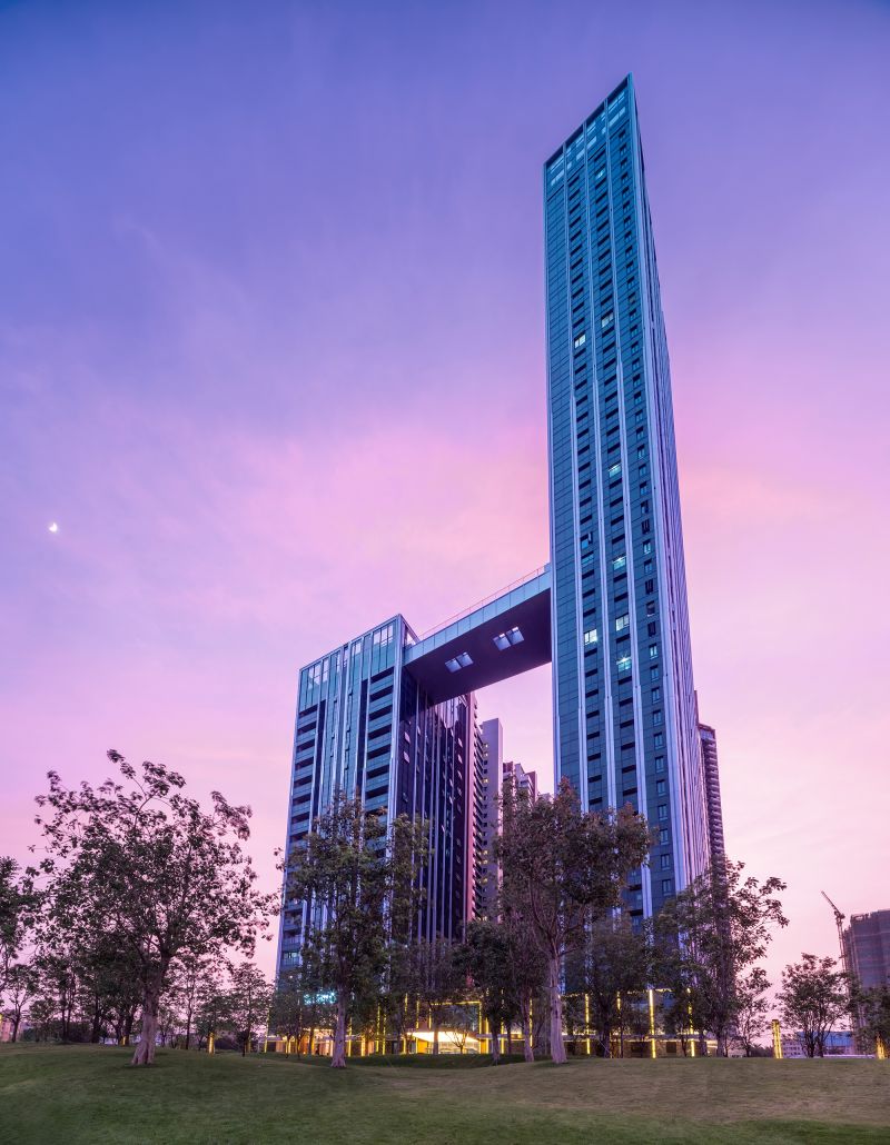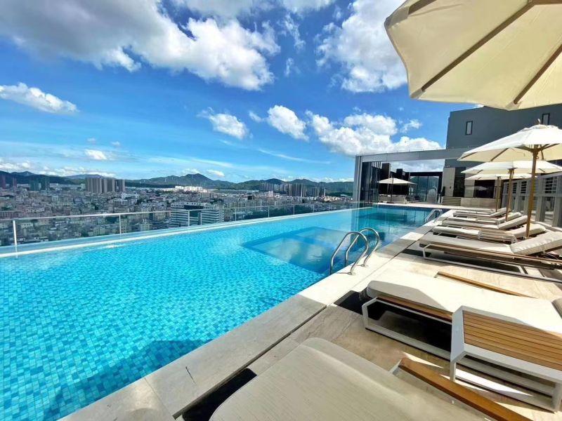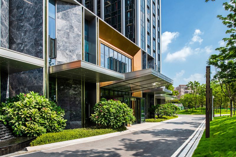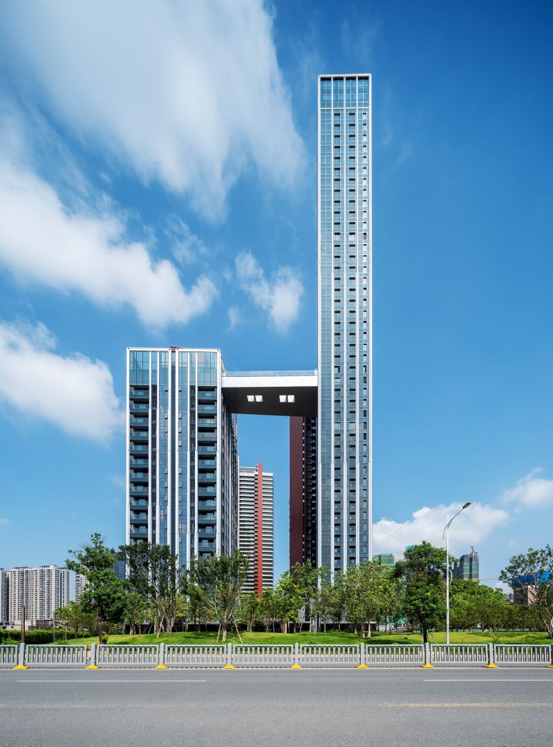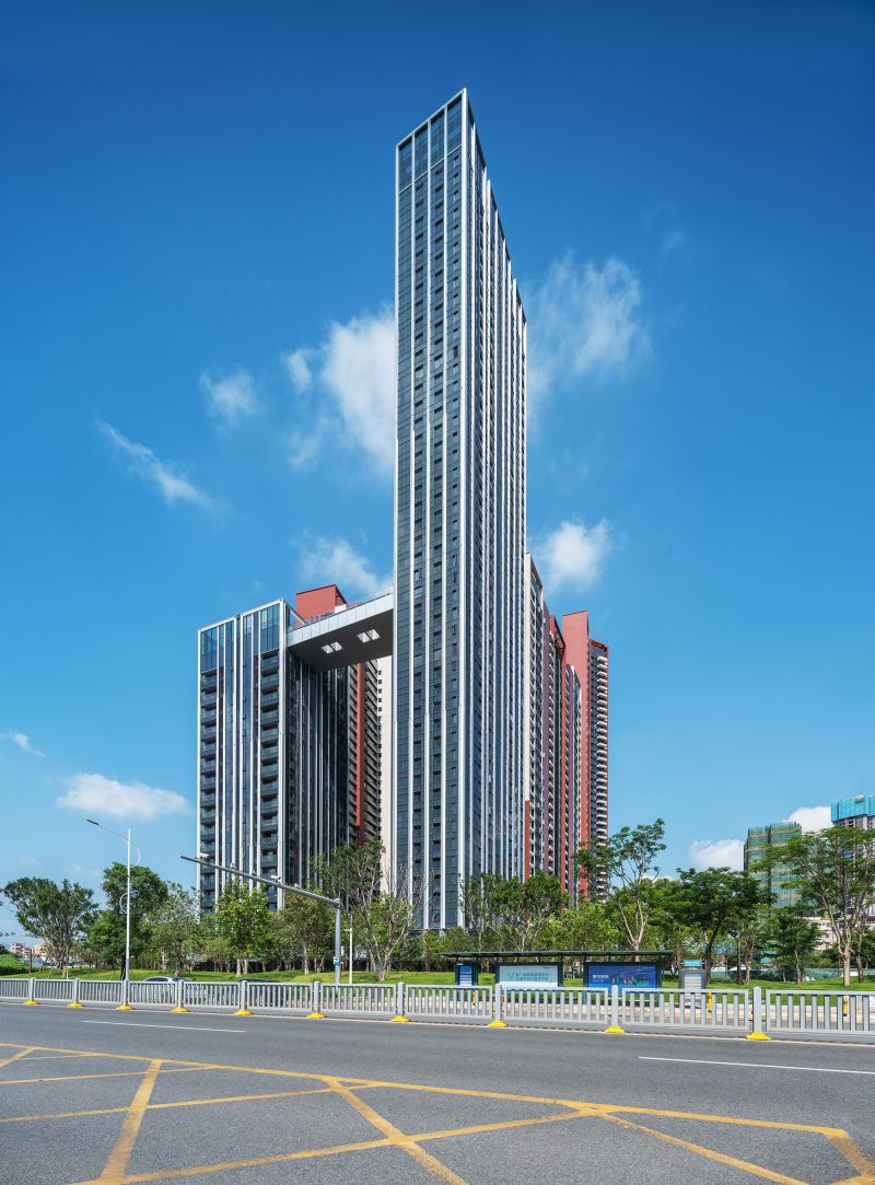 A one-of-a-kind aerial bridge swimming pool connects the 80-meter and 150-meter apartments to form a unique architectural identity. The straight lines wrapped by aluminum gusset plates, from bottom to top, from thick to fine, are the most important language of architecture. The bottom business is composed of stainless -steel plate and marble "box" symbol is the foundation of the building, conveying the stable, upright, architectural temperament.