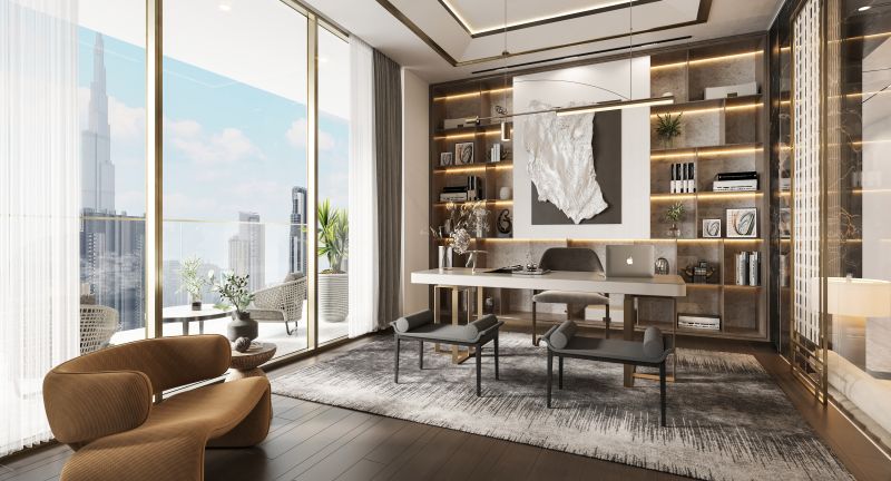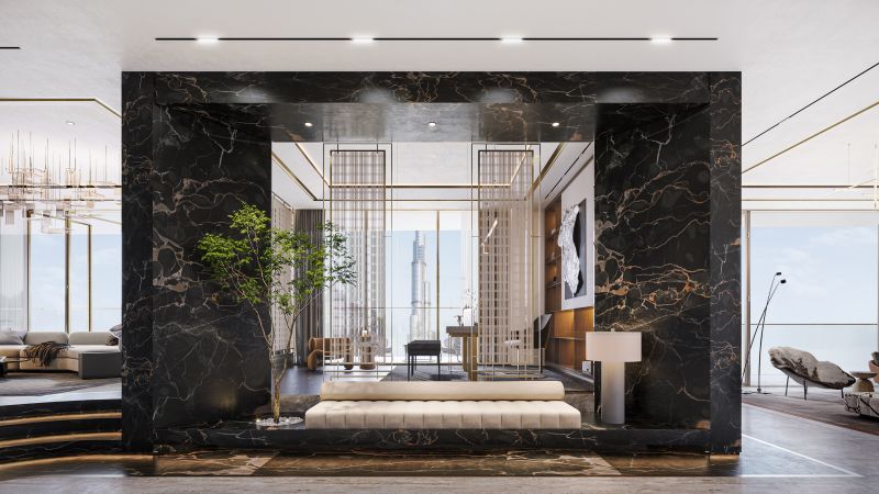 St. Regis Financial Road - The Residences is a 60-storey tower located in Downtown Dubai. It has stunning views of Burj Khalifa and the Dubai Canal. It includes 232 units ranging from 1 to 5-bedroom apartments and amenities such as lounge, library, boardroom, cinema, and game room are included in the building. Inspired by traditional areesh houses, ghaf trees, falaj systems, pearl diving and arabian coffee, the St Regis project is linked to UAE from historical, physical and social perspective.