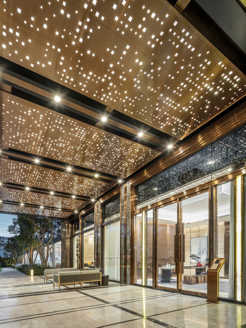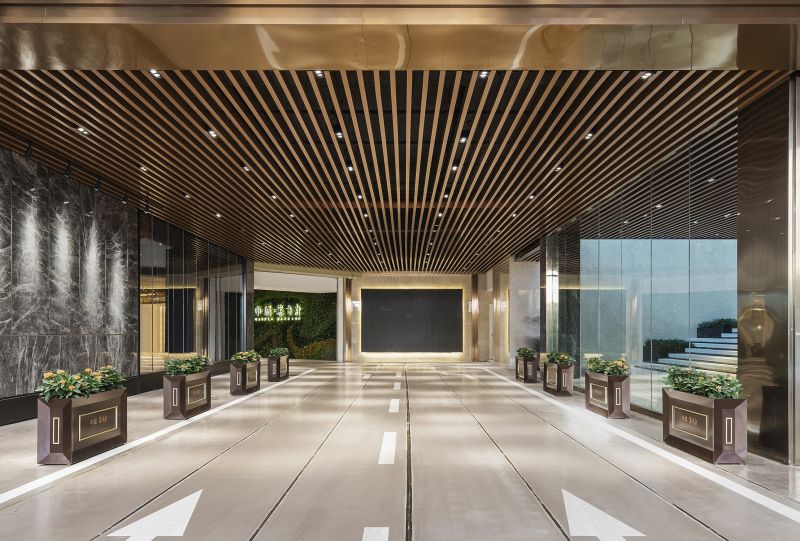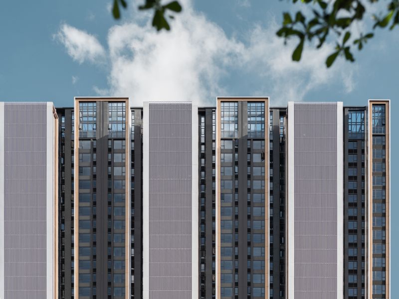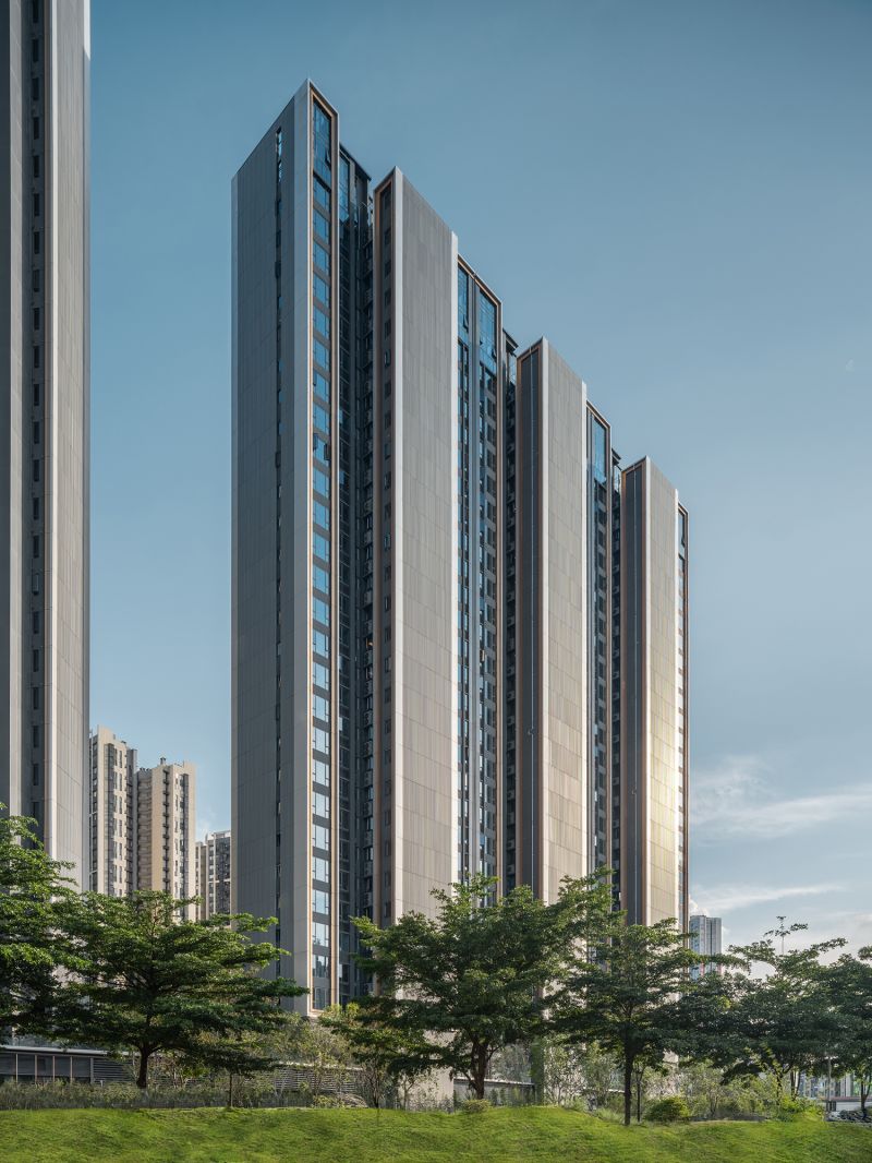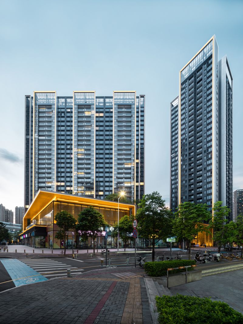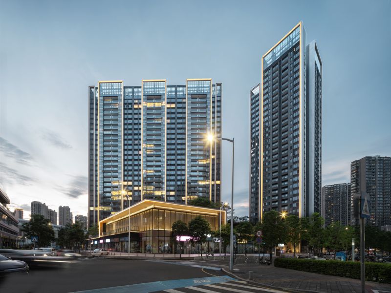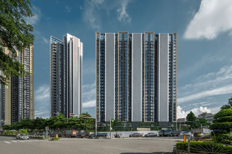 This project is a high-end residential community in Longhua Central District, Shenzhen. It's made up of two T2 panels and a T4 point.Overhead garage on the ground floor, shops along the road on three sides, garden on top.The overall architectural style and space are built according to five-star hotel standards.The two-storey main entrance door with a stainless-steel ceiling is luxurious.The tower is equipped with a unit system of Windows and doors, which are combined with aluminum panels to form a number of simple vertical volumes on the facade.