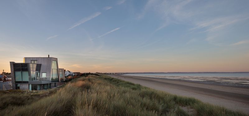 The site is located adjacent to the sand dunes between Dungeness and Greatstone-on-Sea in an Area of Outstanding Natural Beauty. It lies at a bend in the long seafront road at the end of a strip of beachfront detached houses dating from the mid-20th century to today.